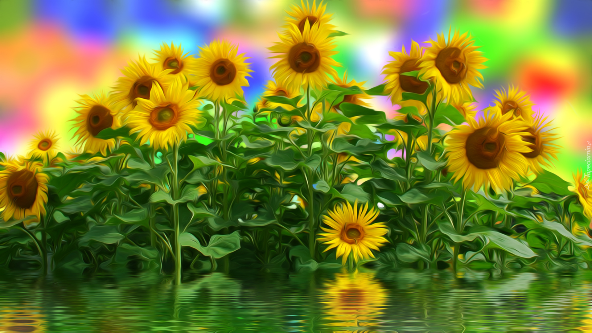 Edytor tapety: Słoneczniki nad wodą