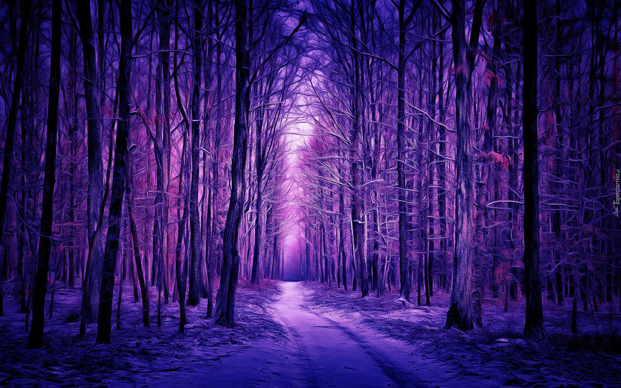 Edytor tapety: Las zimą w grafice