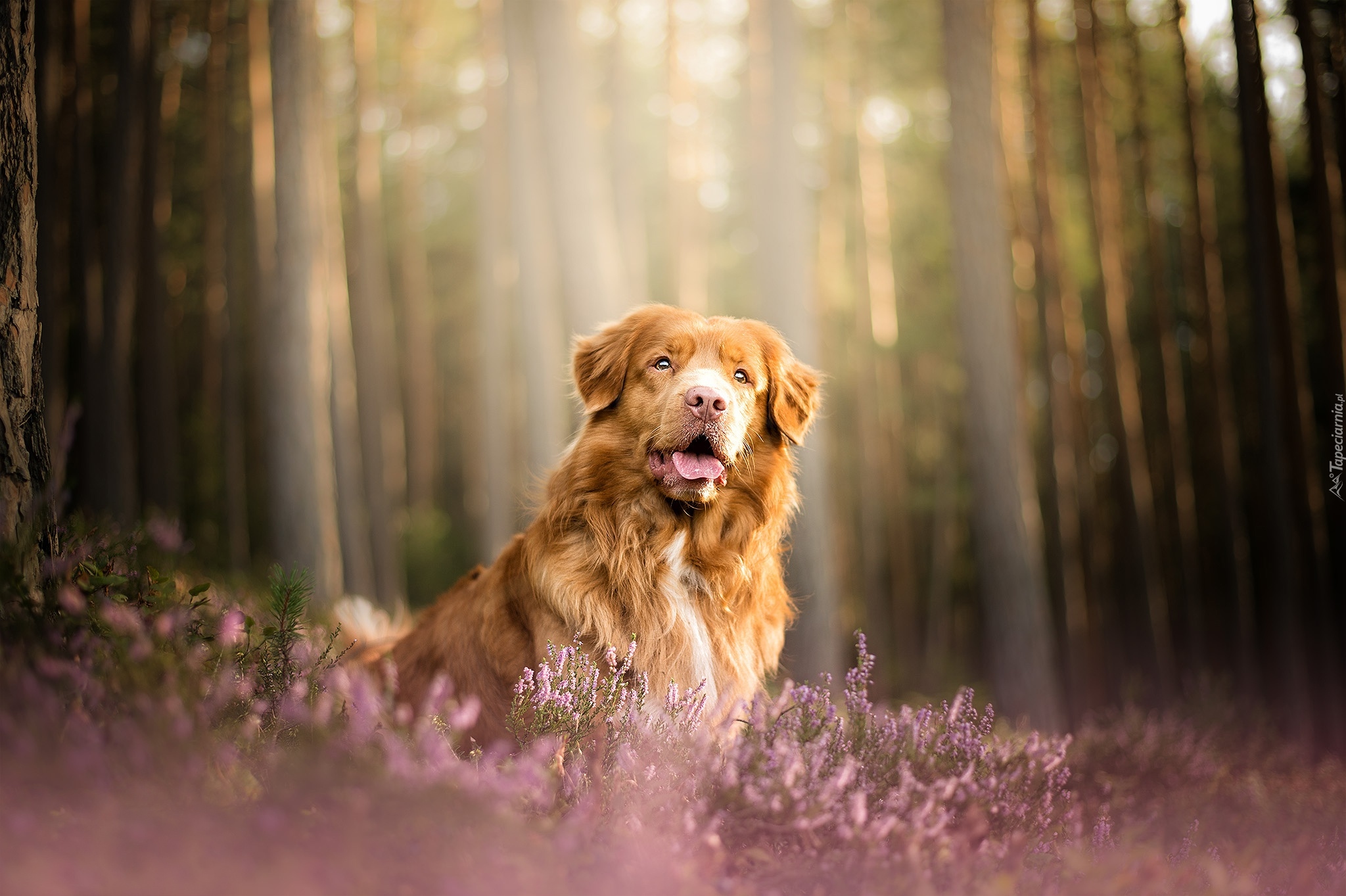 Edytor tapety: Retriever z Nowej Szkocji między wrzosami