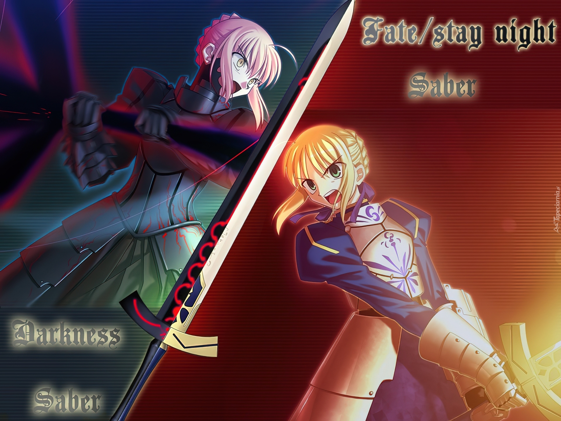 Edytor tapety: Fate Stay Night, dziewczyny, miecz, napisy