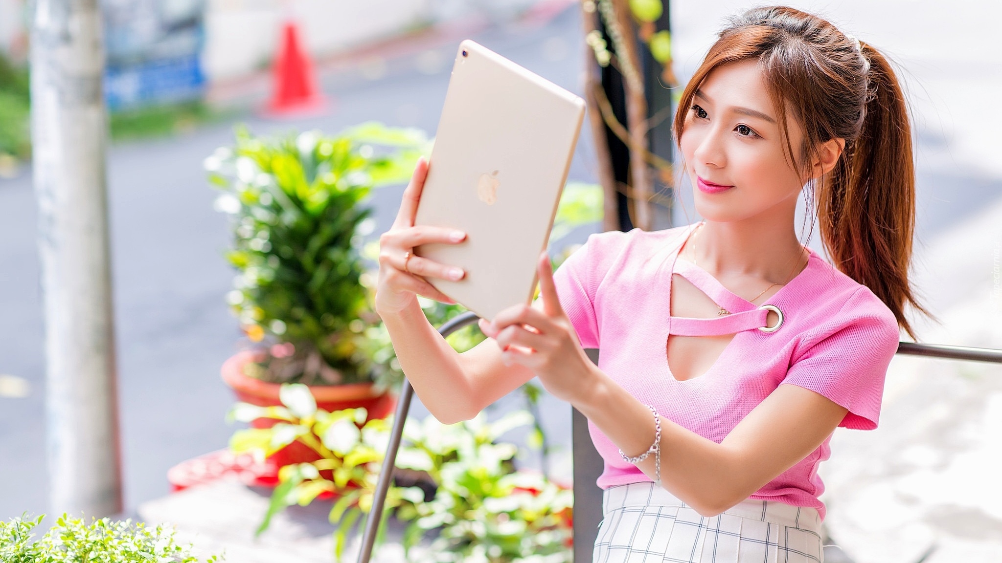 Edytor tapety: Azjatka z tabletem