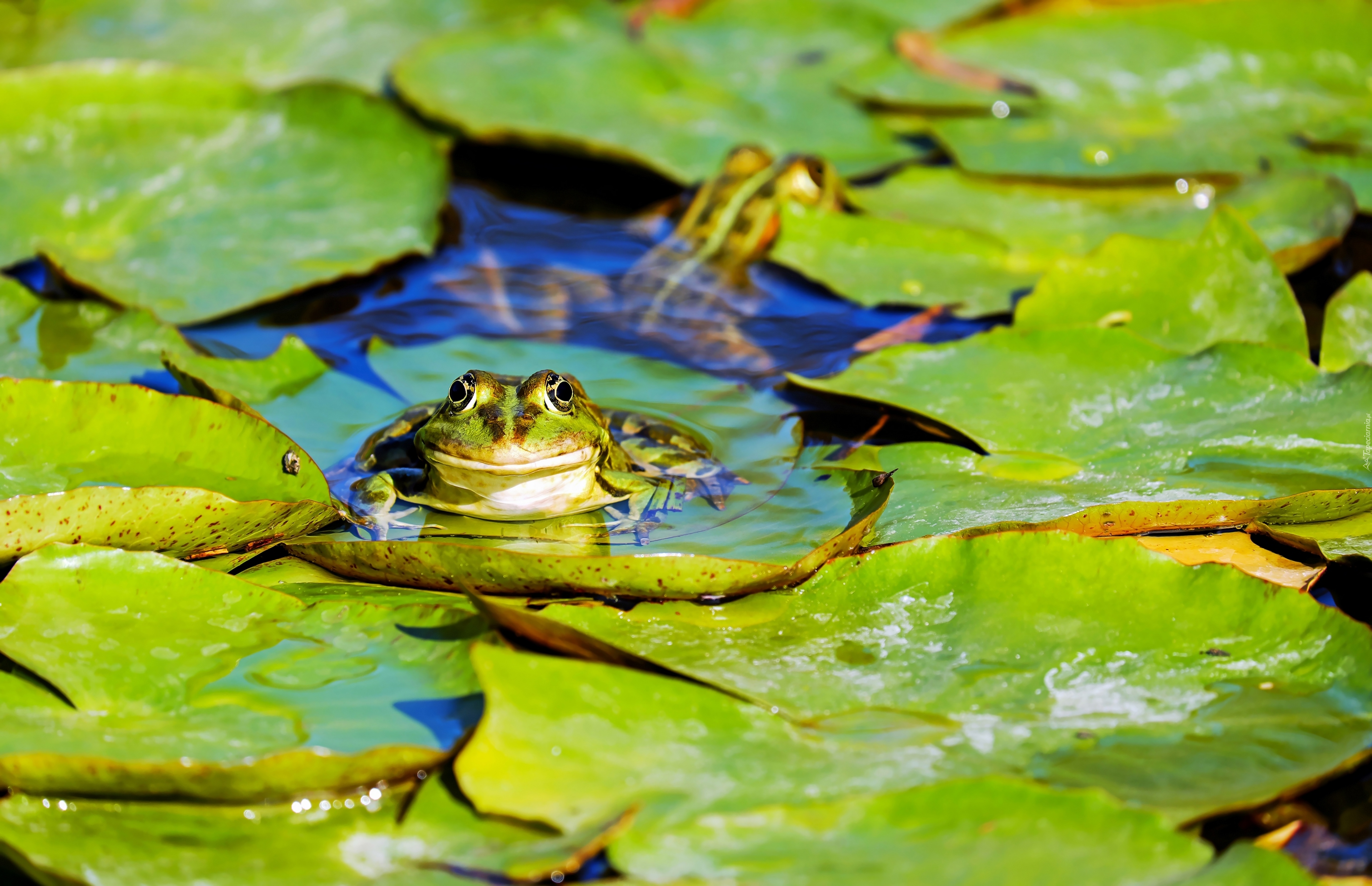 Edytor tapety: Żaby na liściach w wodzie