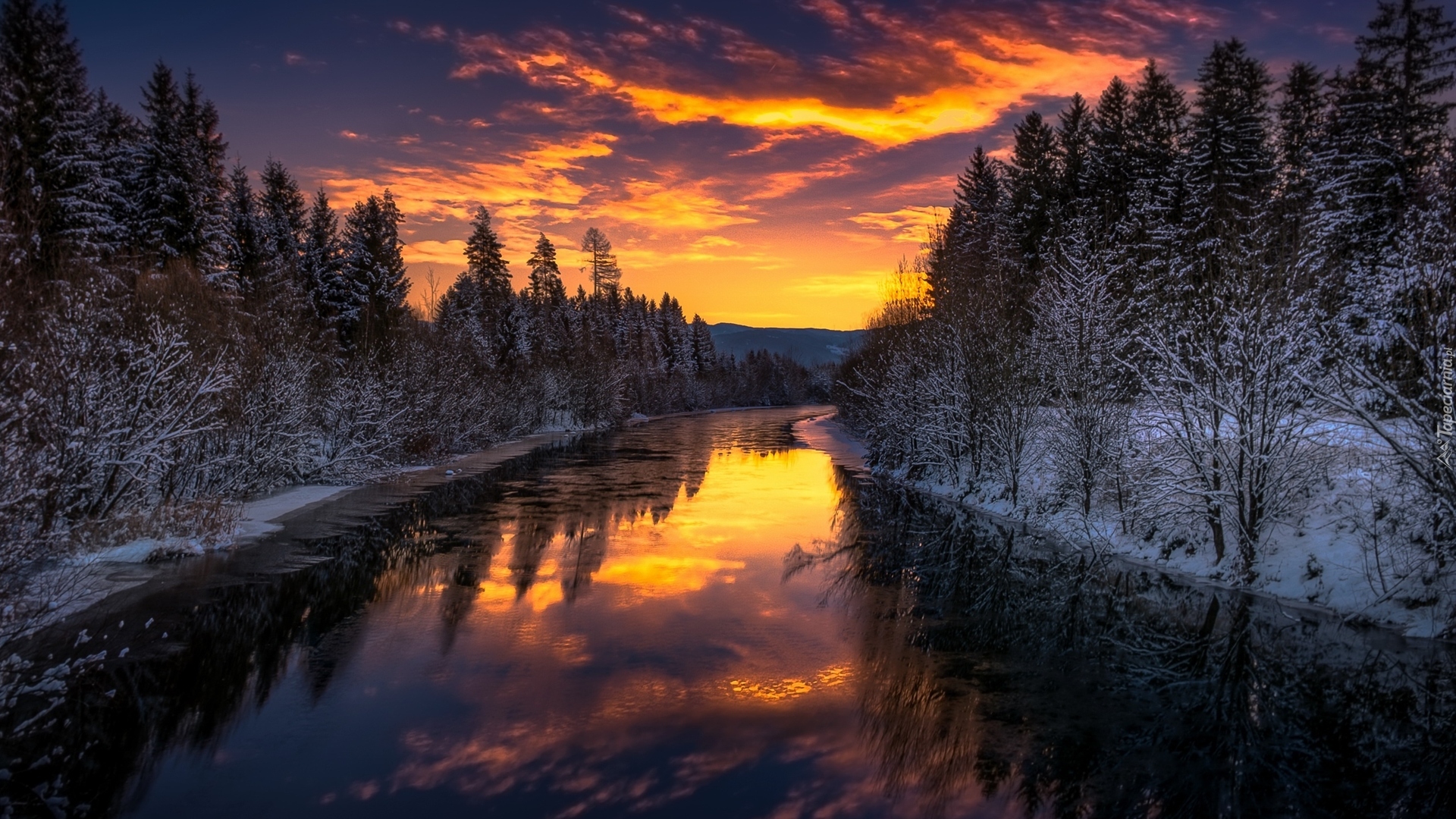 Edytor tapety: Zimowy zachód słońca nad rzeką