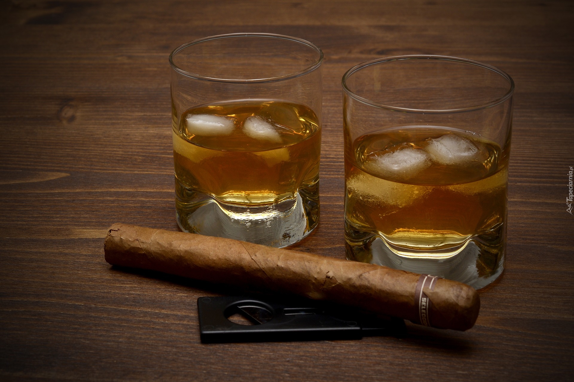 Edytor tapety: Dwie szklanki whisky z lodem i cygaro