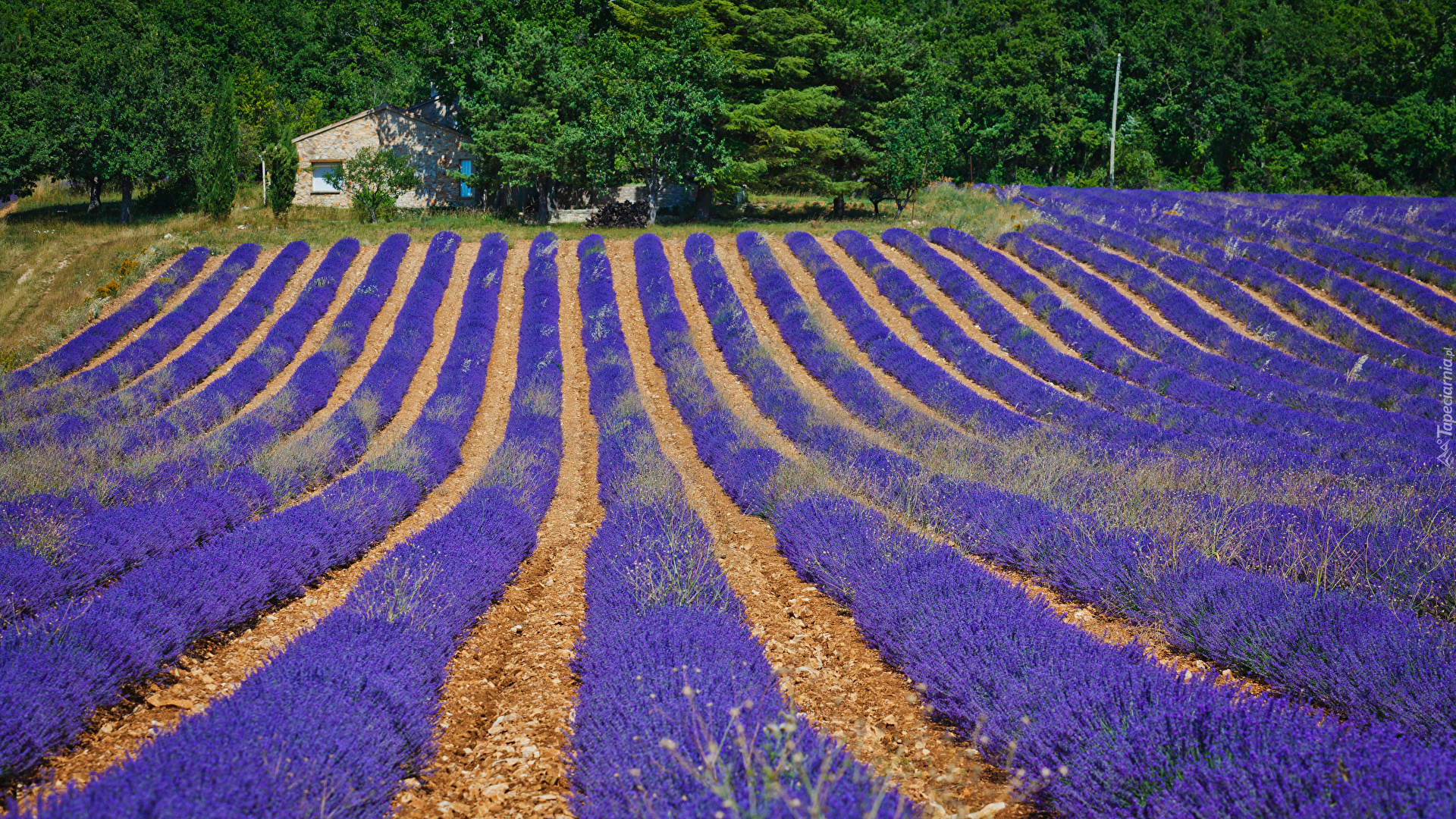 Edytor tapety: Dom przy lawendowym polu