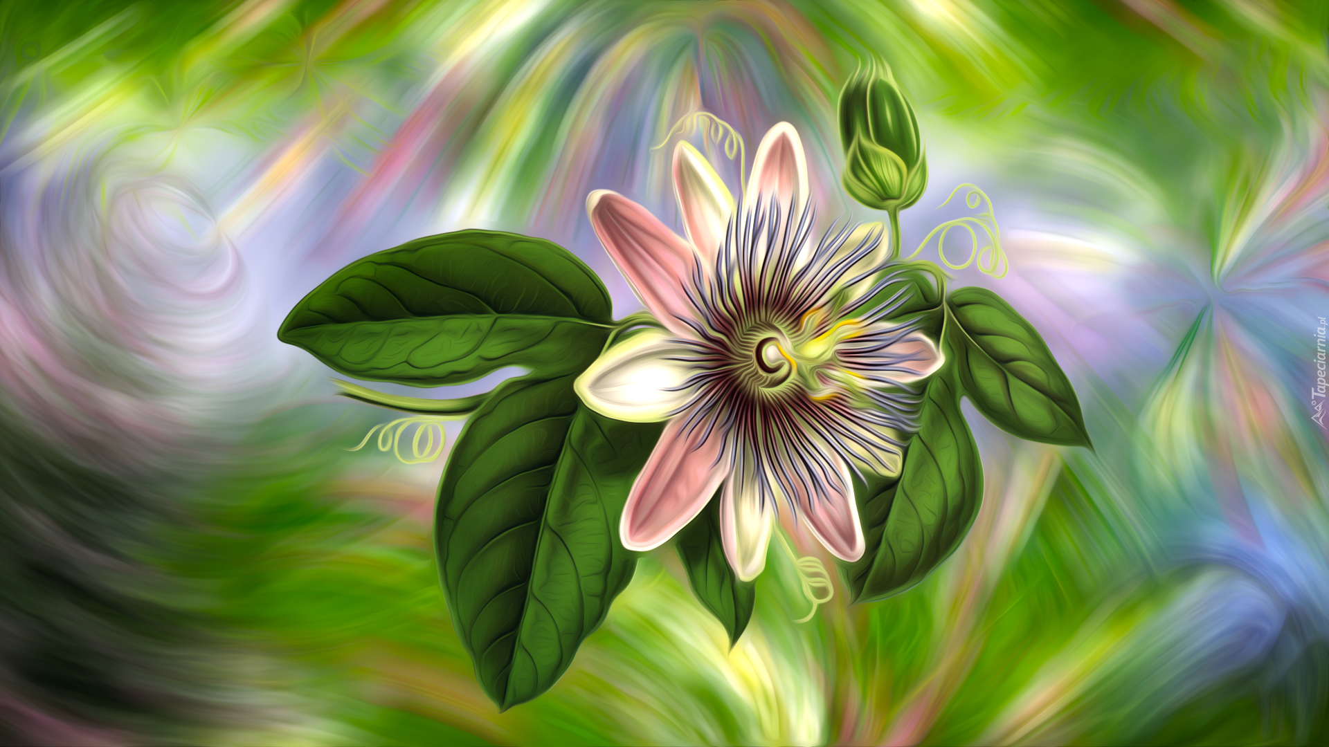Edytor tapety: Kwiat z pąkiem na kolorowym tle