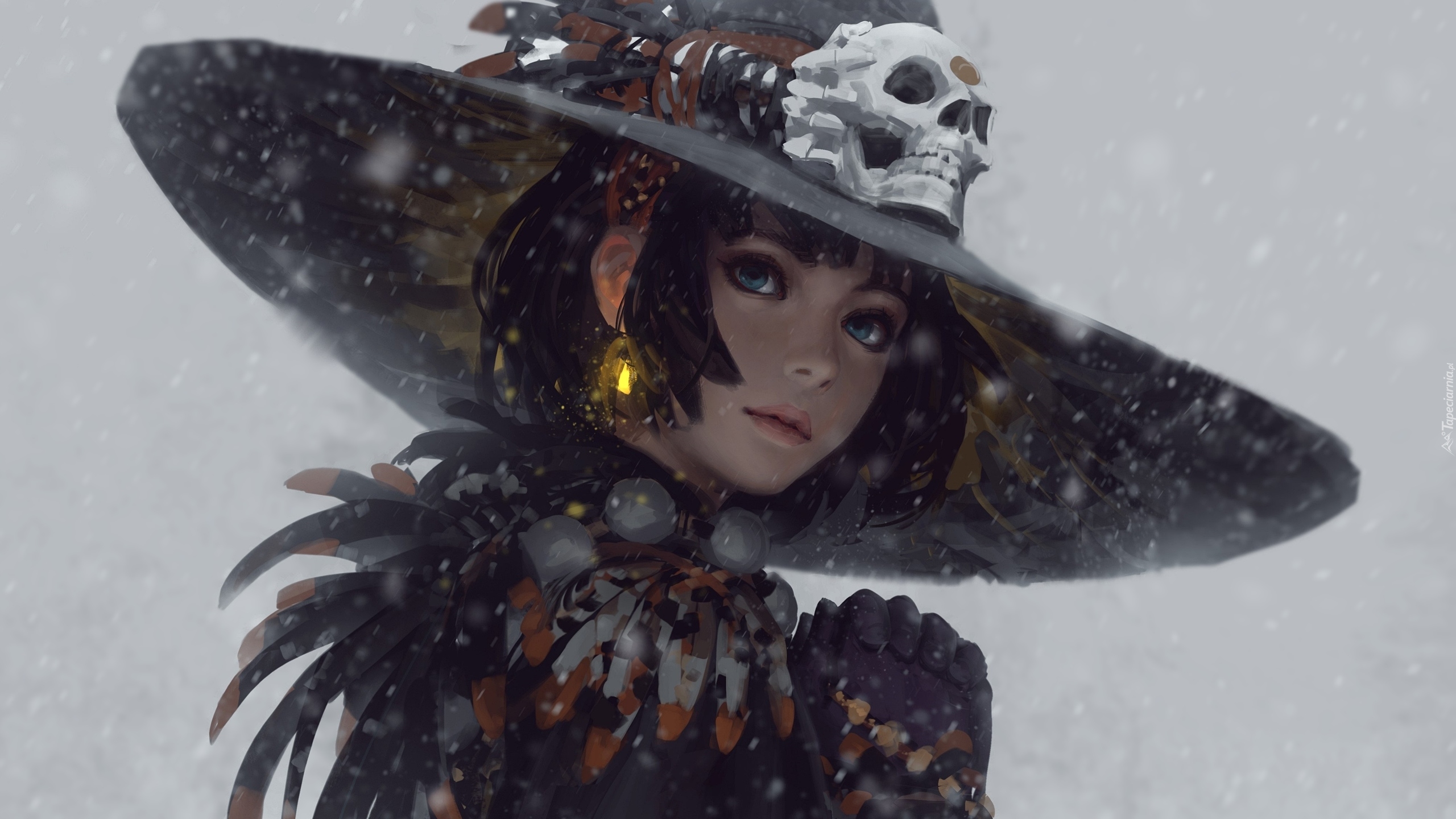 Edytor tapety: Dziewczyna z czaszką na kapeluszu