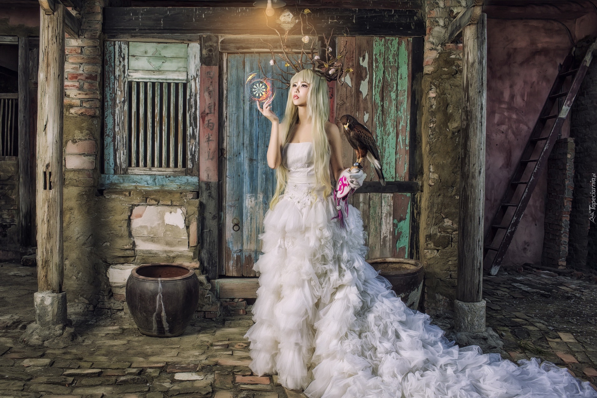 Edytor tapety: Kobieta w białej sukience