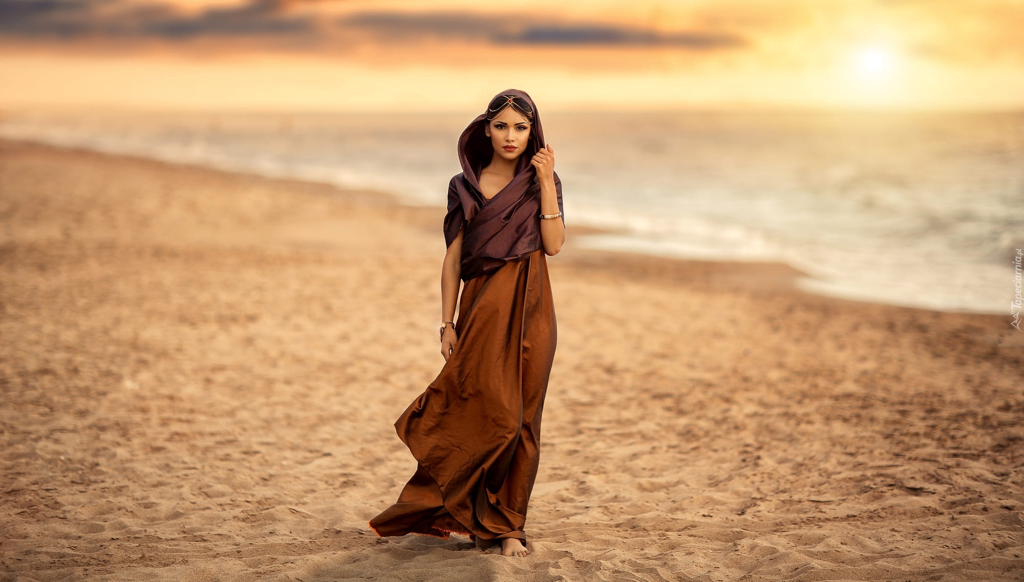 Edytor tapety: Kobieta w długiej sukience na plaży