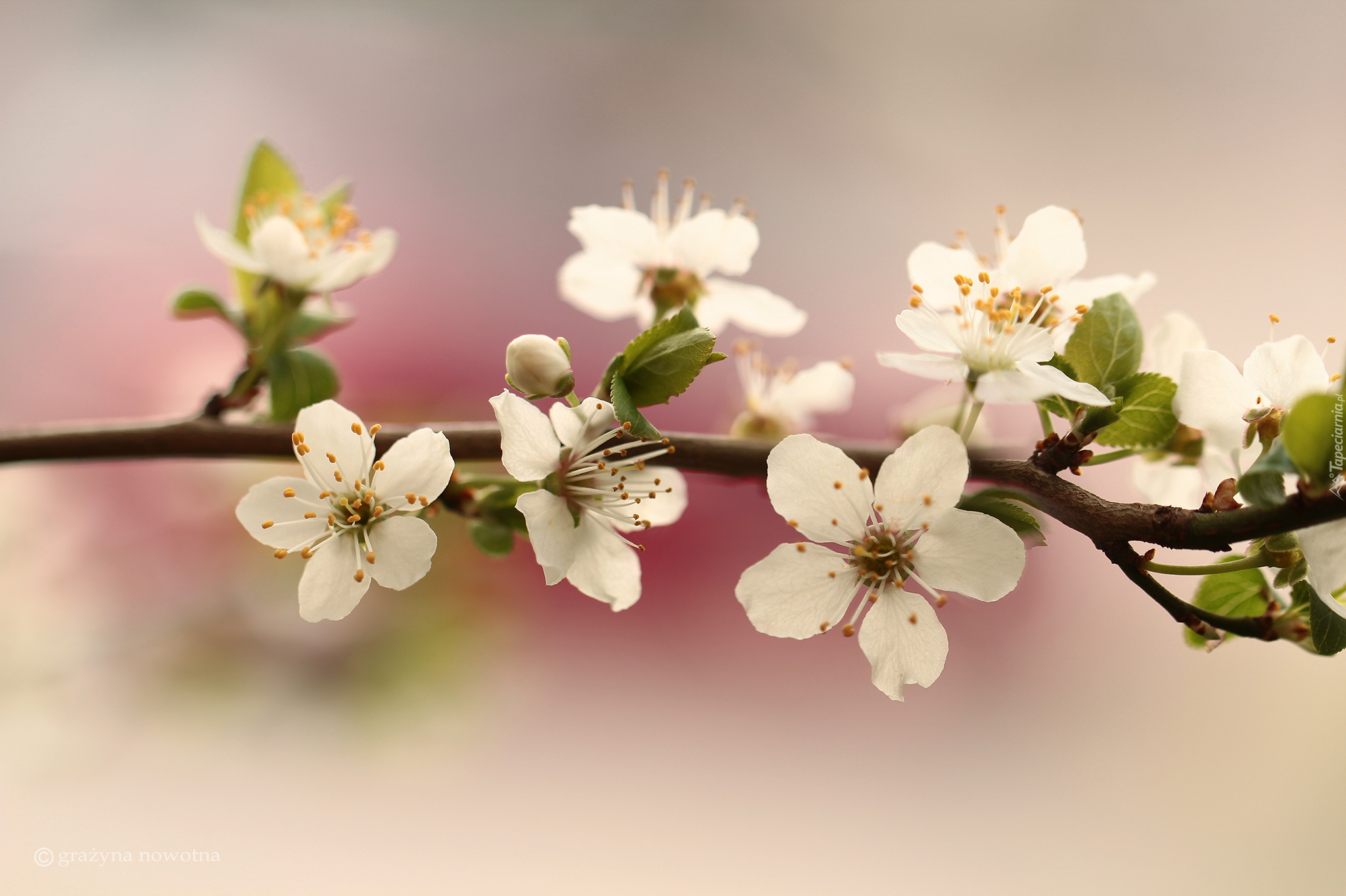 Edytor tapety: Gałązka z kwiatami drzewa owocowego