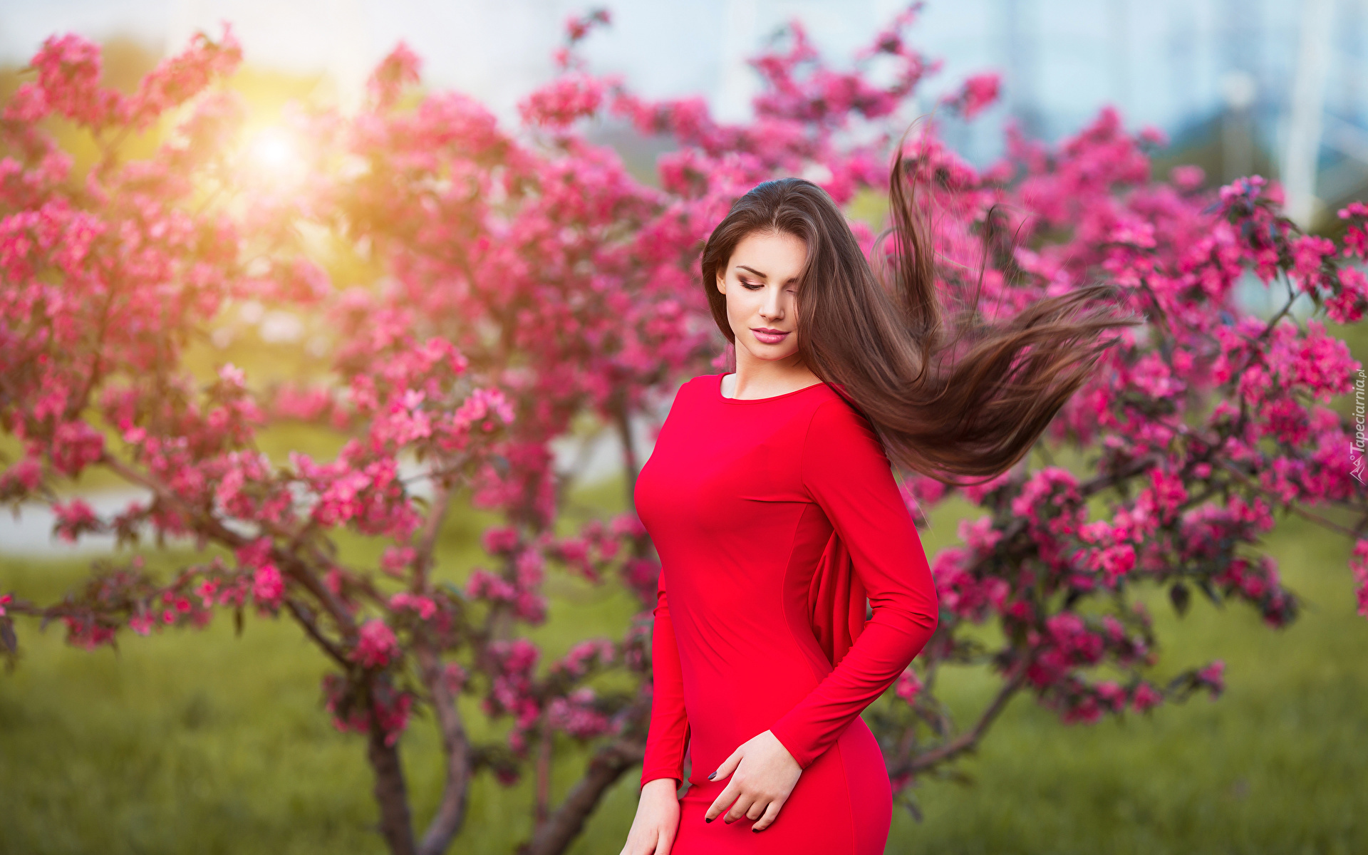 Edytor tapety: Szatynka w czerwonej sukience