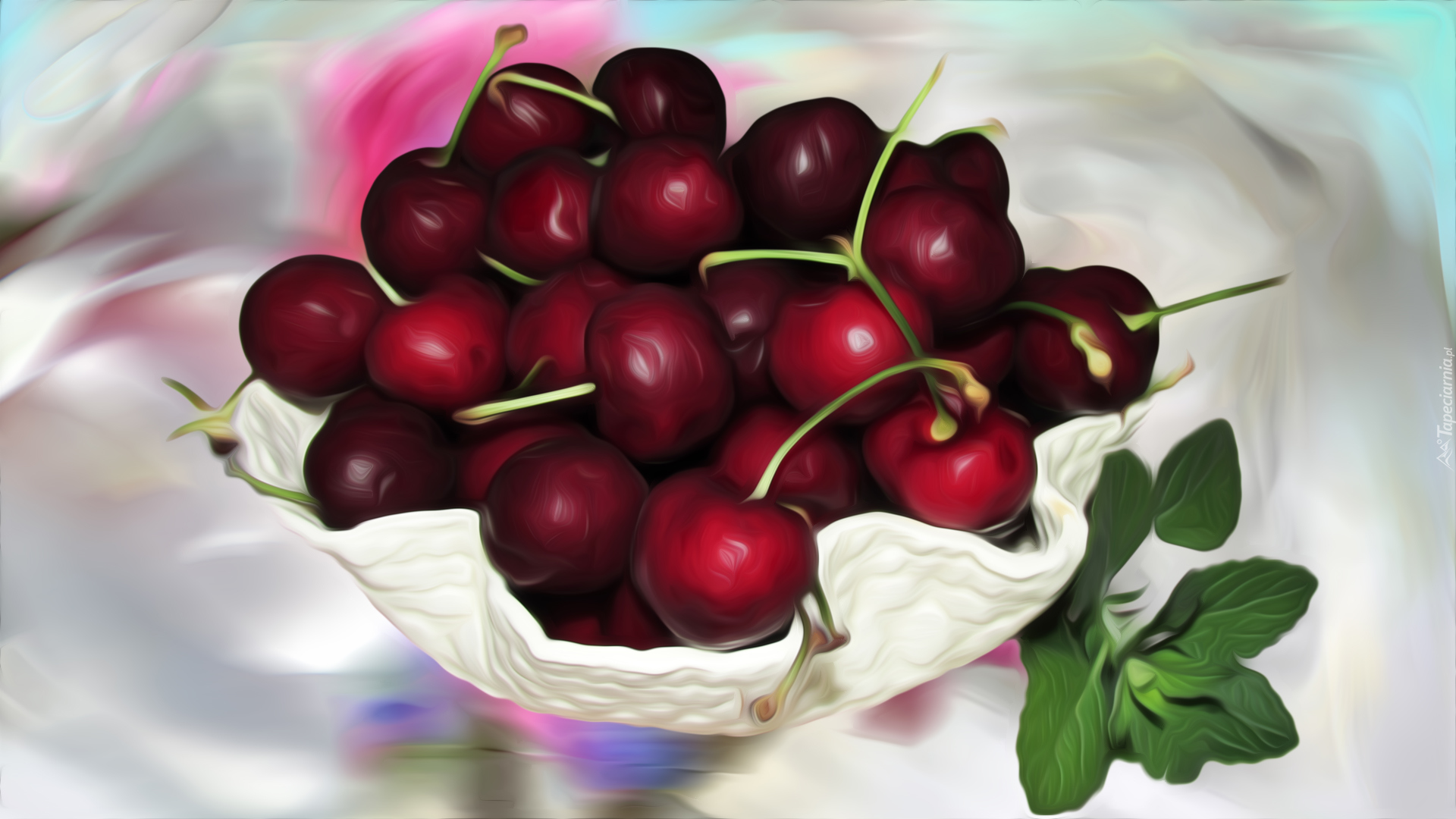 Edytor tapety: Wiśnie w miseczce