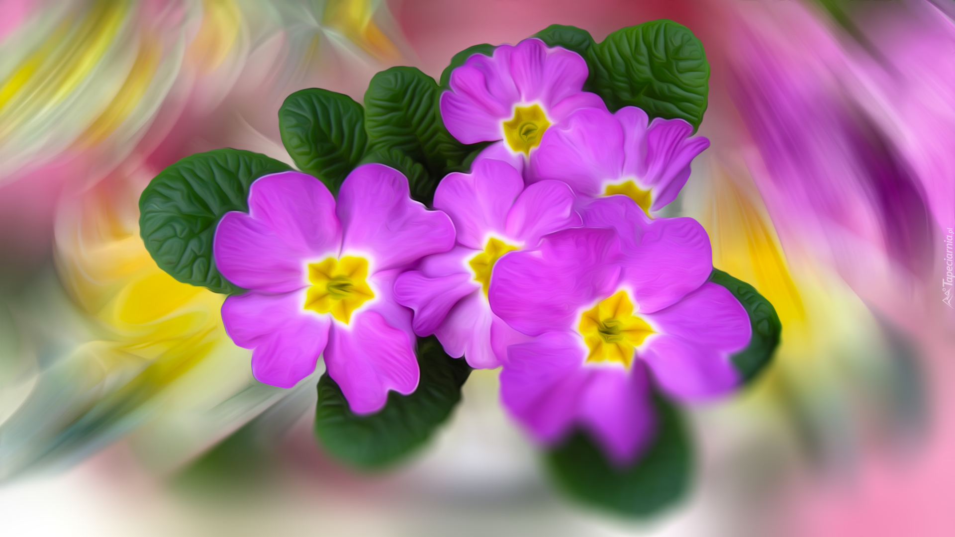 Edytor tapety: Bukiecik pierwiosnków w grafice