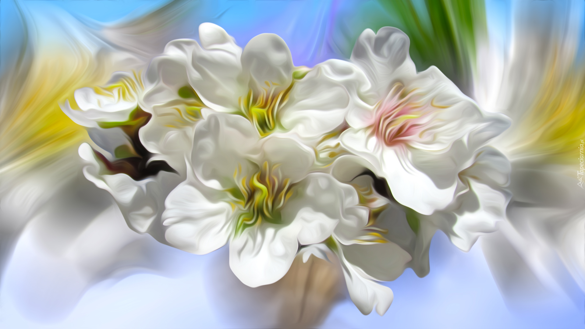 Edytor tapety: Białe kwiaty drzewa owocowego