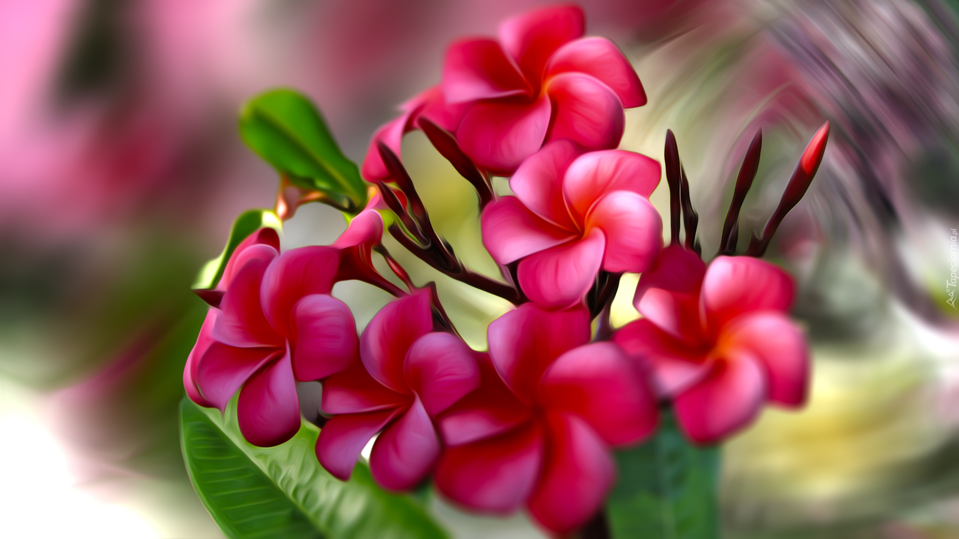 Edytor tapety: Czerwone kwiaty plumerii w grafice