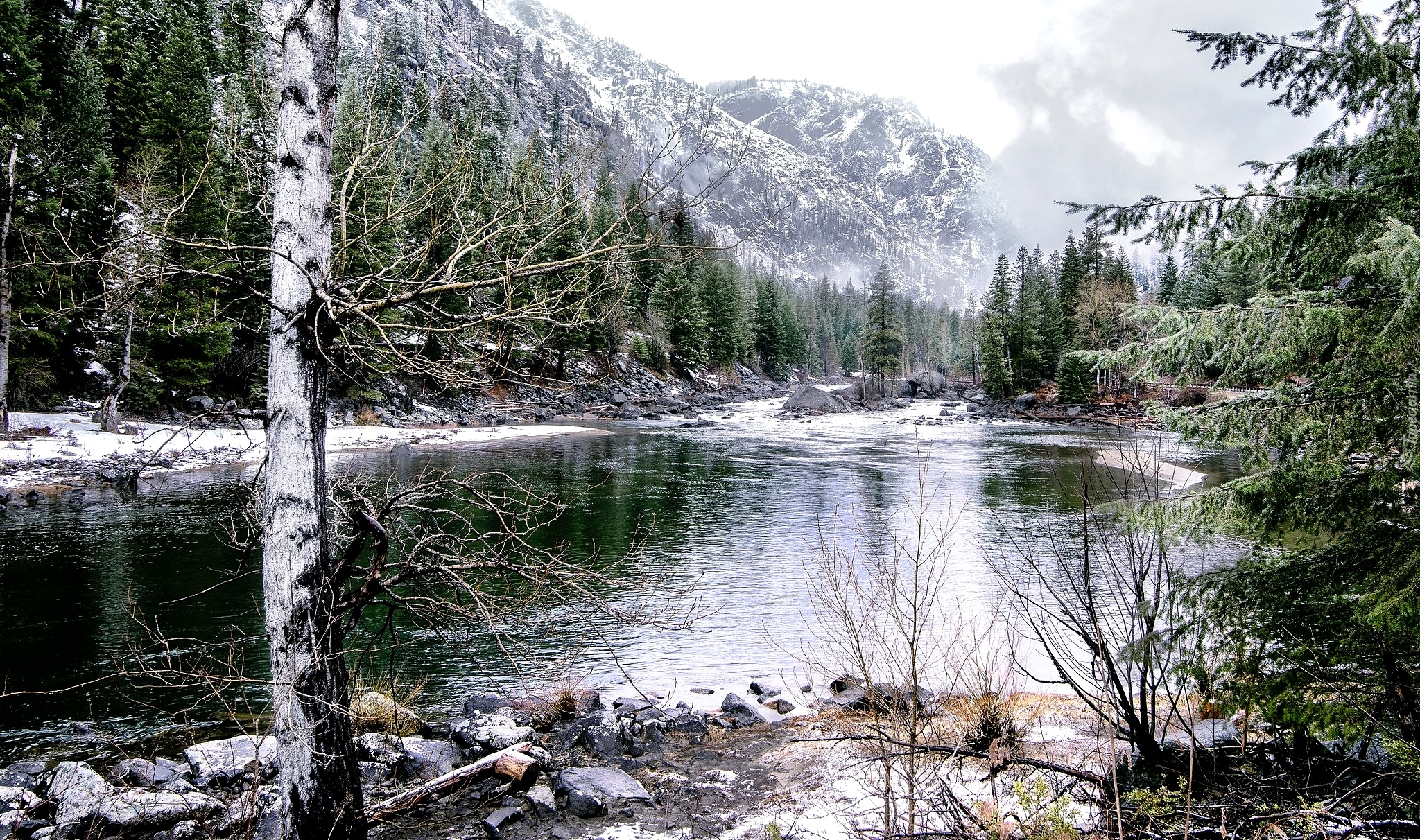 Edytor tapety: Rzeka w górach zimową porą