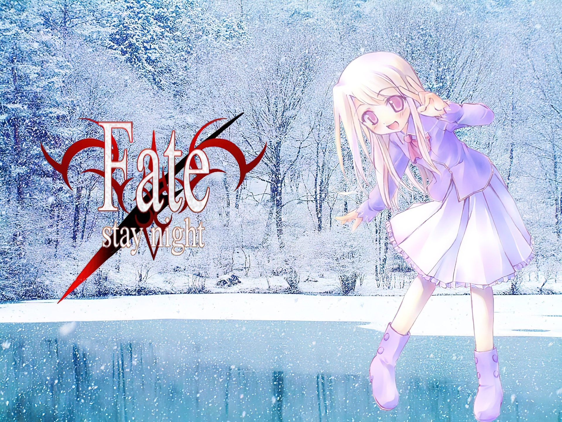 Edytor tapety: Fate Stay Night, dziewczyna, zima, napisy, drzewa
