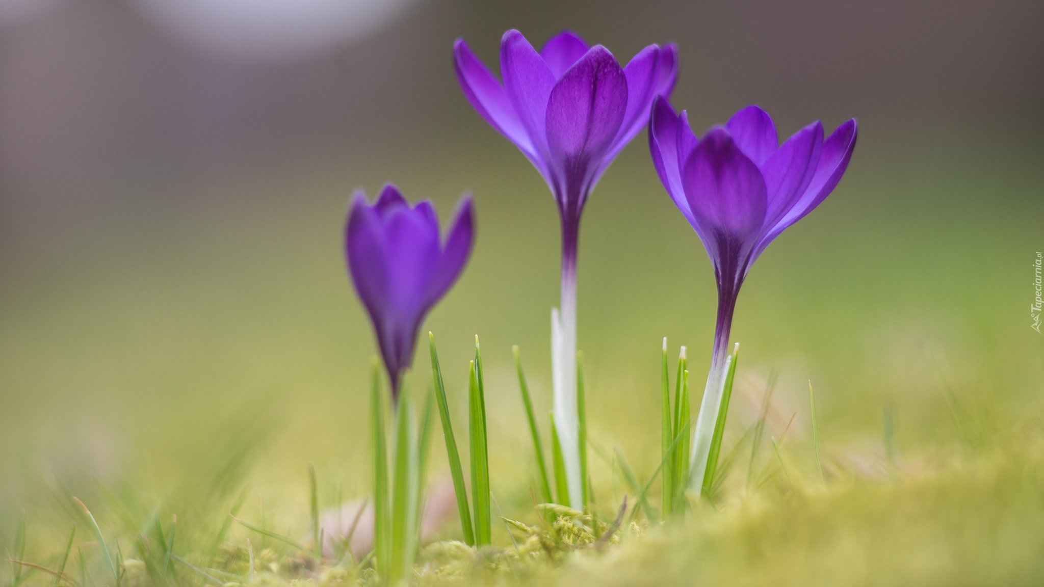 Edytor tapety: Trzy krokusy w trawie