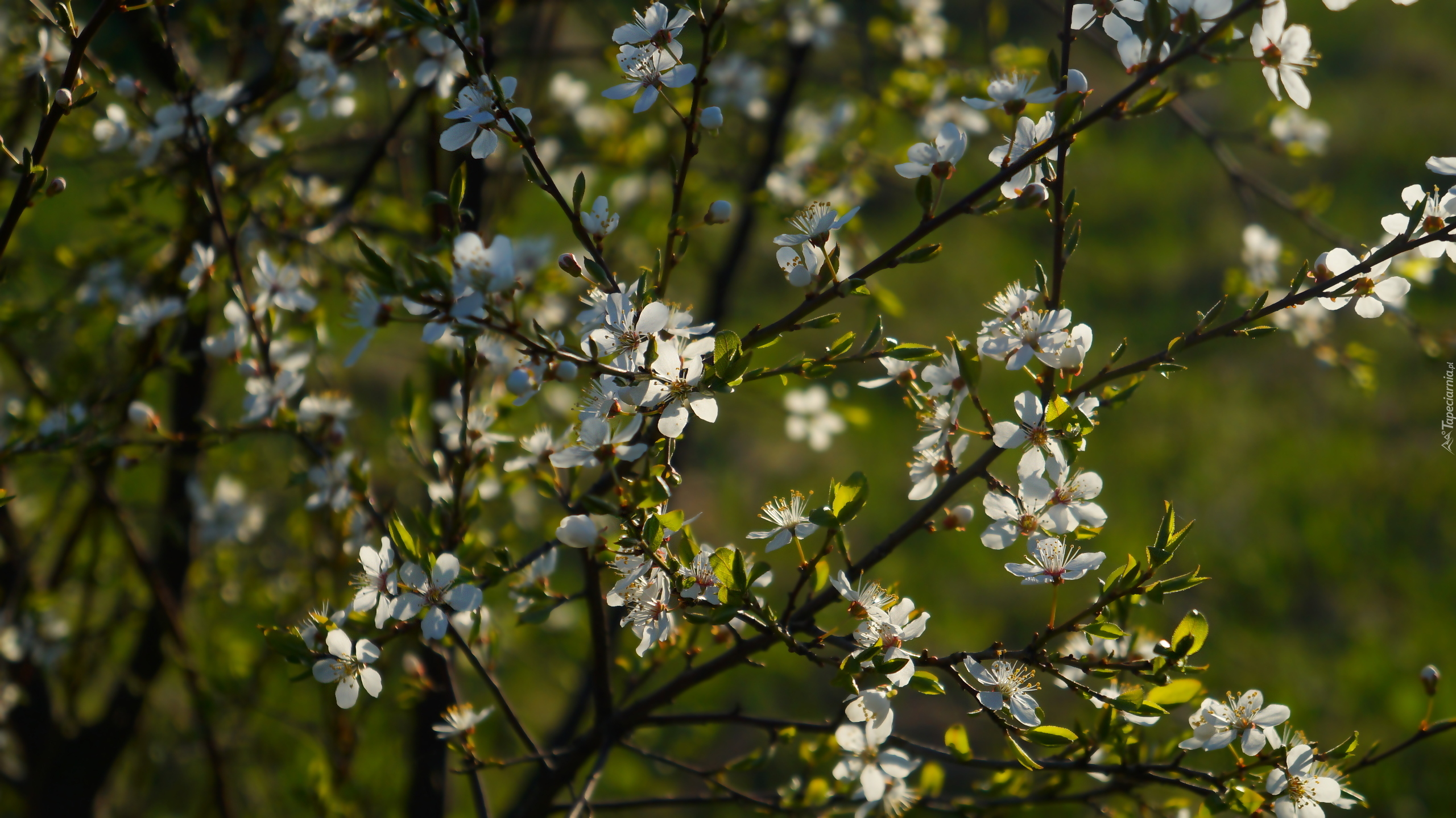 Edytor tapety: Białe kwiaty na drzewie owocowym