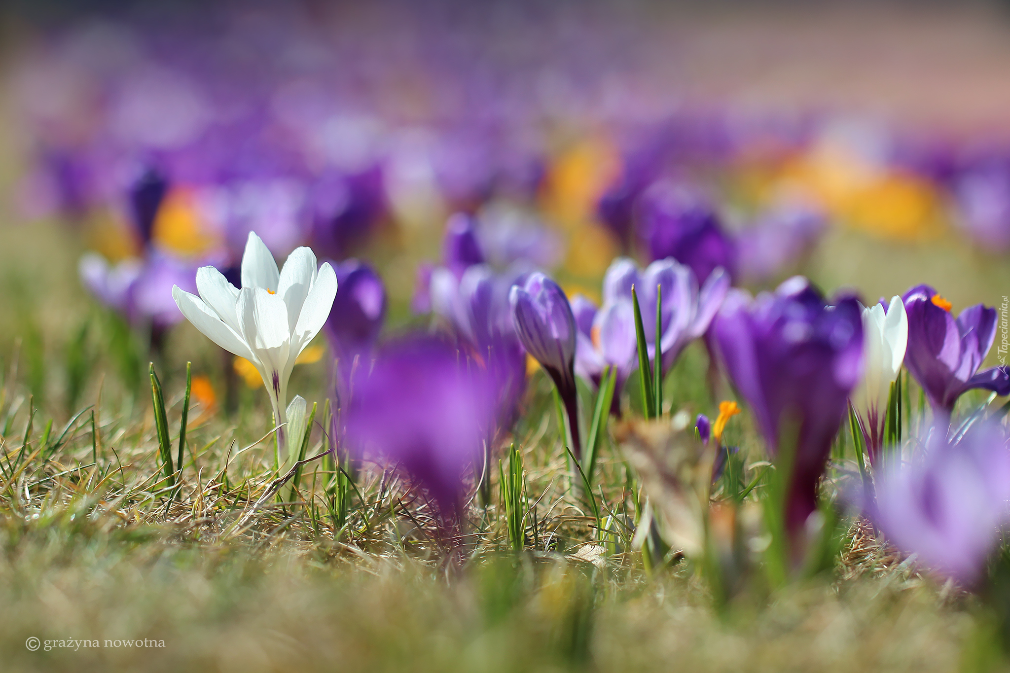 Edytor tapety: Fioletowe i białe krokusy