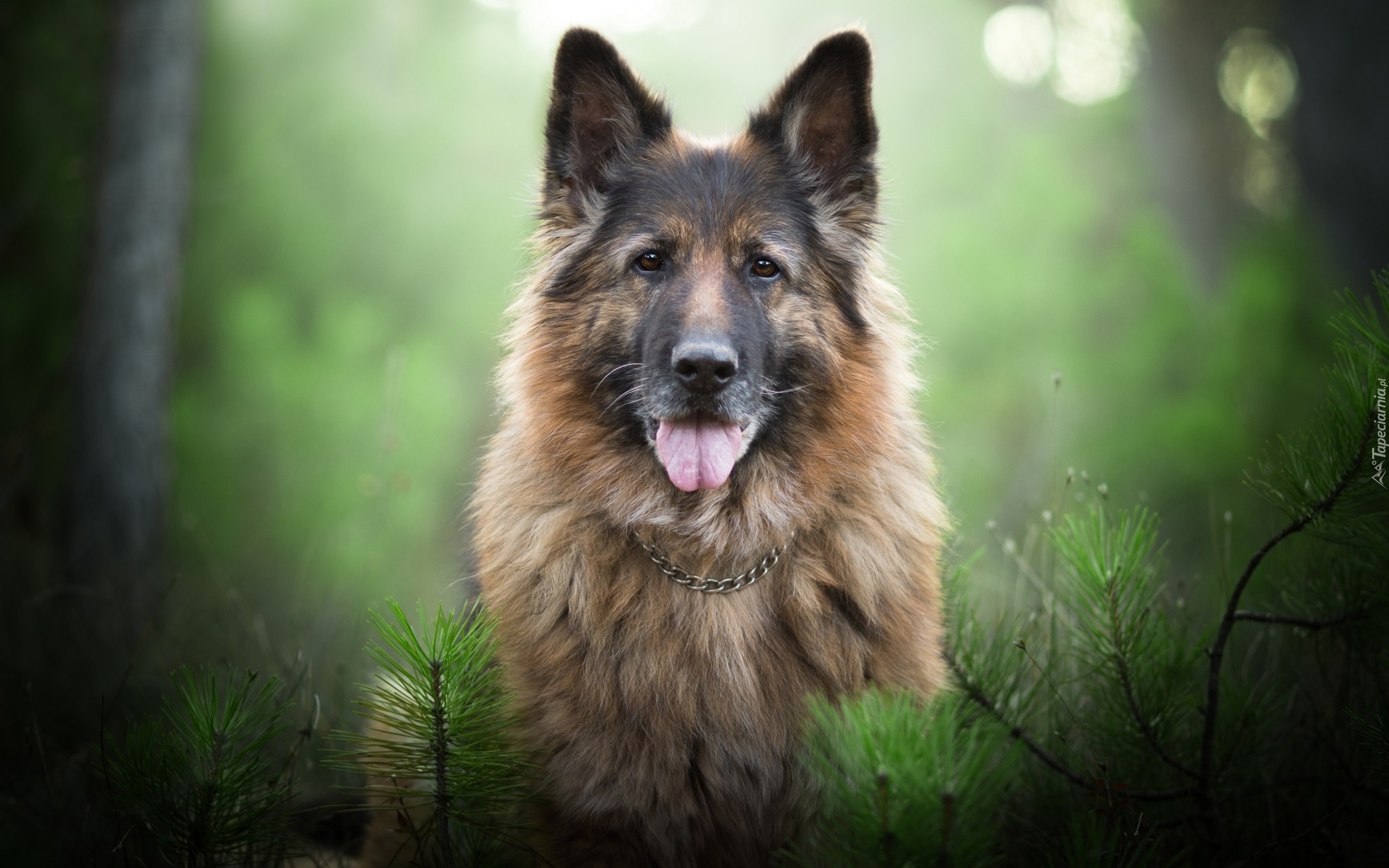 Edytor tapety: Owczarek niemiecki wśród roślin