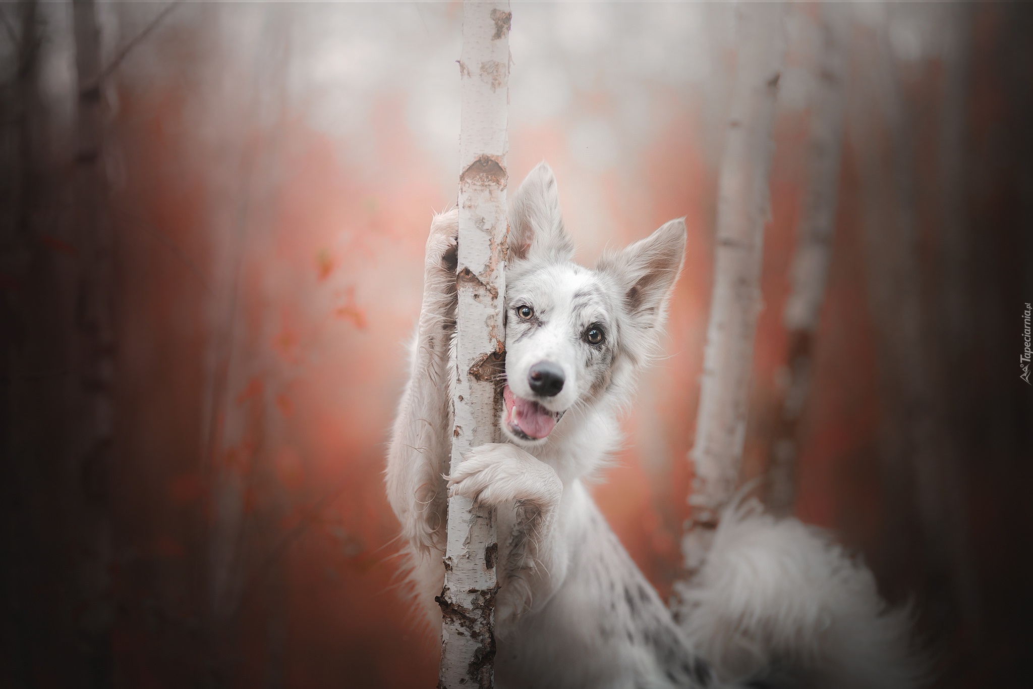 Edytor tapety: Border collie oparty o brzozę