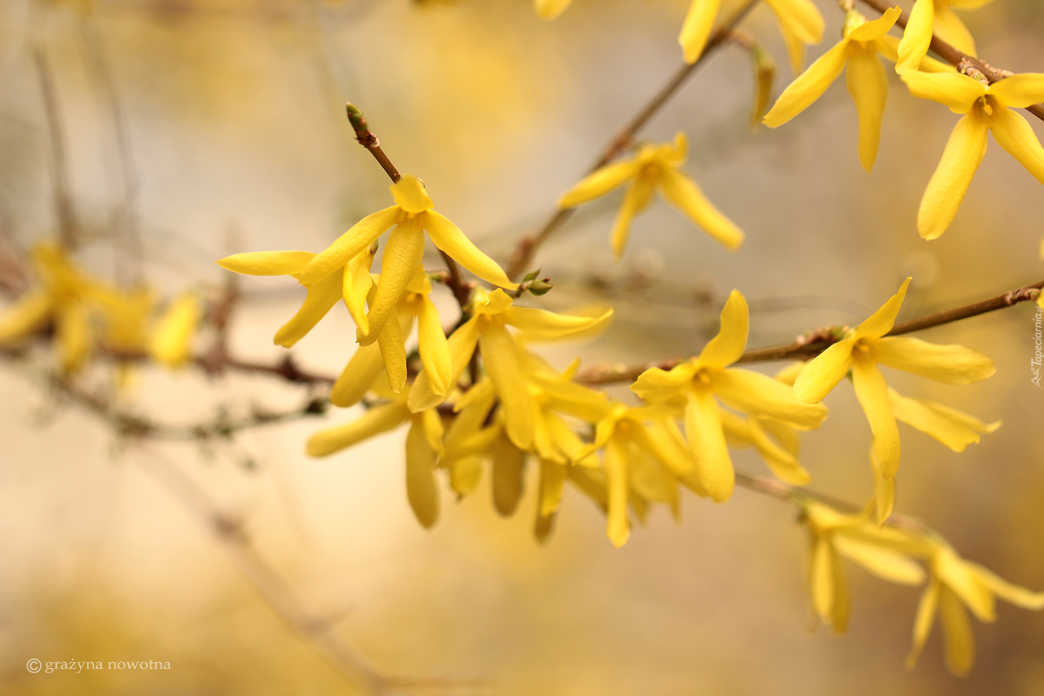 Edytor tapety: Żółte kwiaty forsycji na gałązkach