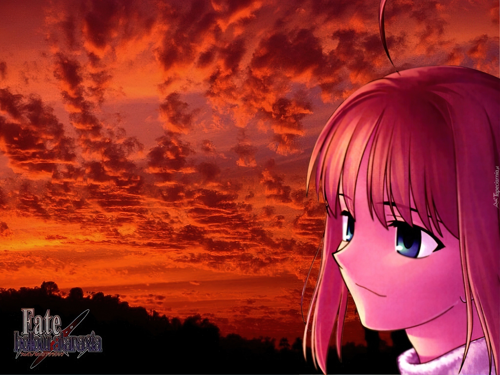 Edytor tapety: Fate Stay Night, twarz, zachód, logo, napisy