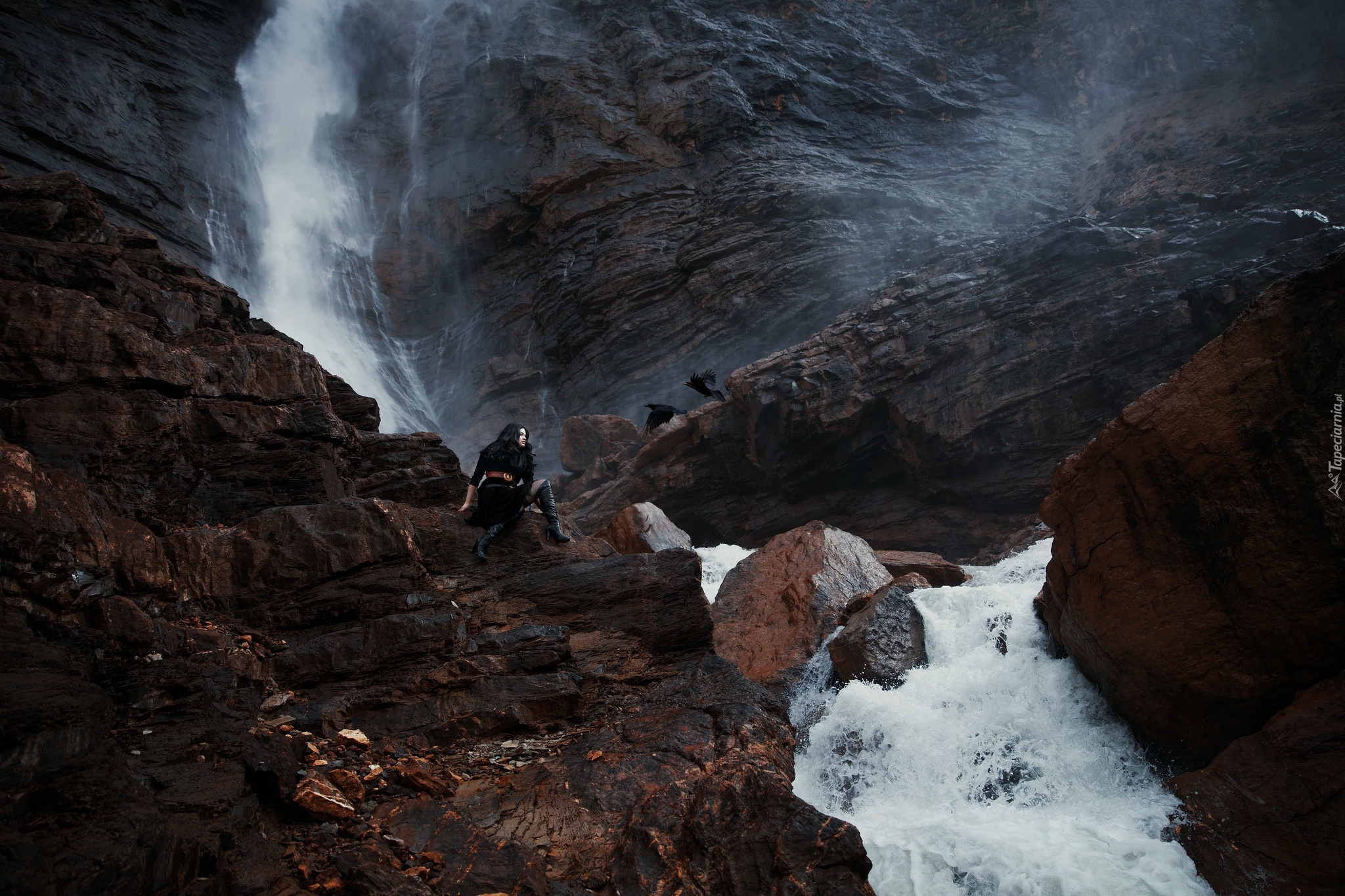 Edytor tapety: Dziewczyna obok wodospadu