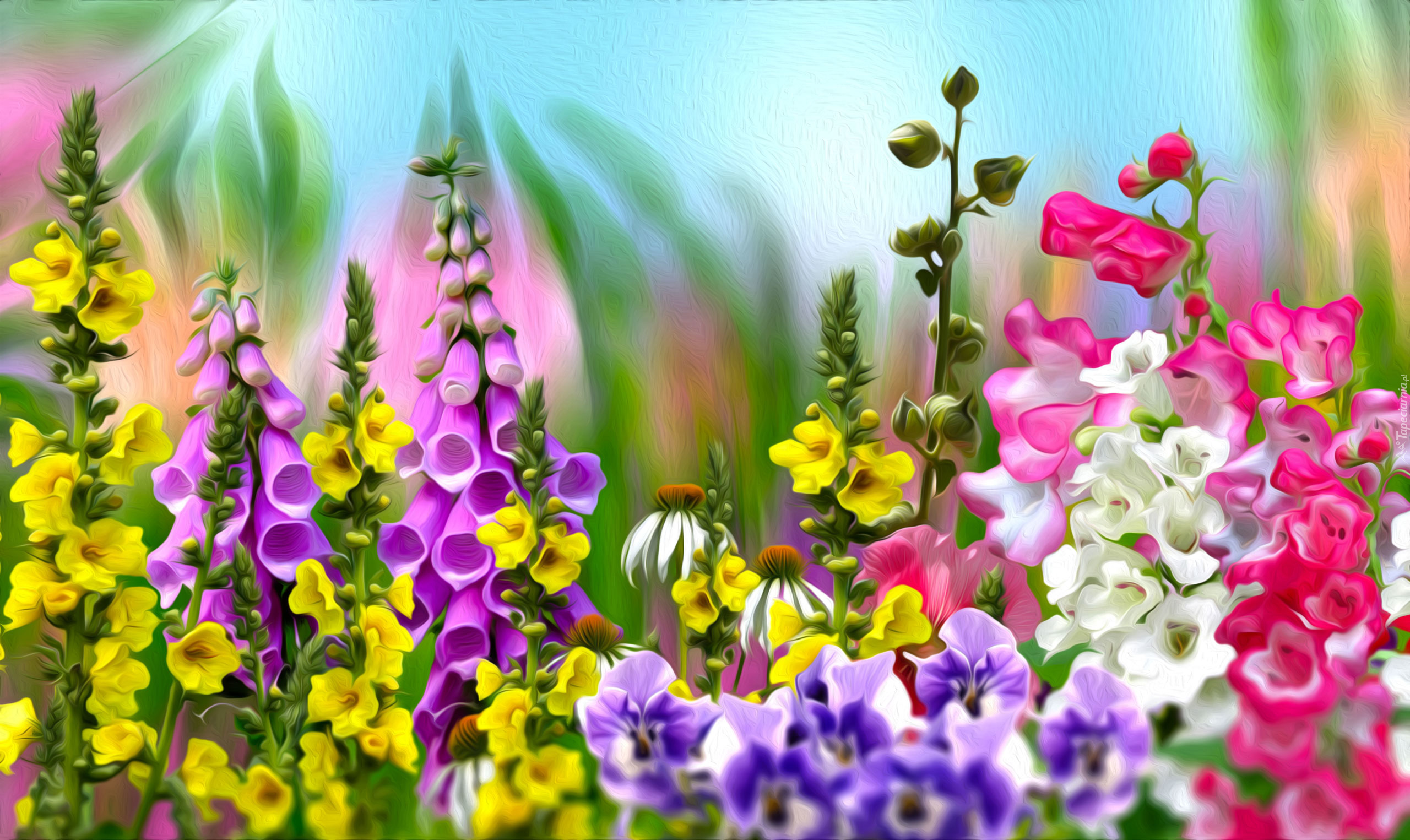 Edytor tapety: Różnorodne kwiaty w grafice