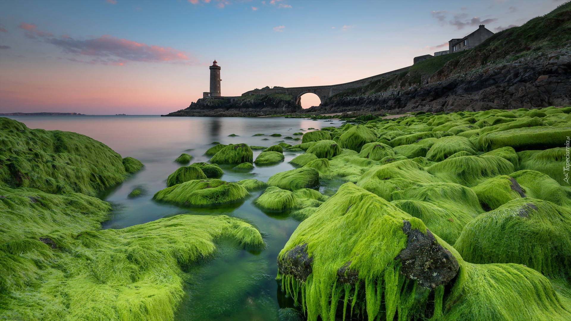 Edytor tapety: Kamienie pokryte wodorostami w Plouzane