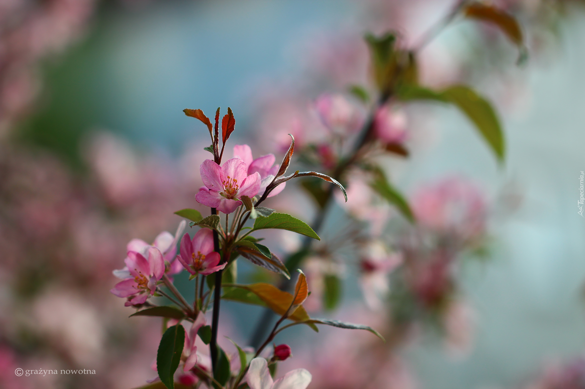 Edytor tapety: Drobne różowe kwiatki na gałązce