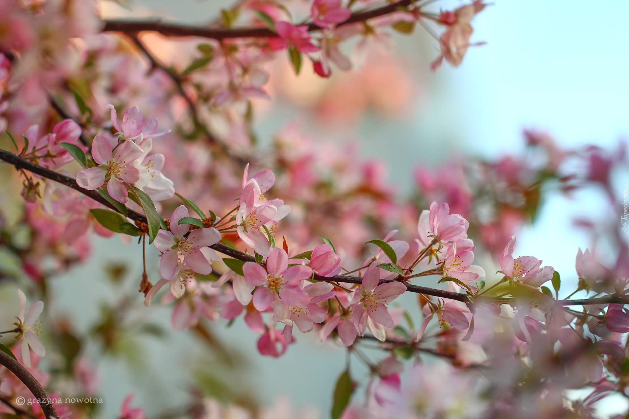 Edytor tapety: Kwitnące gałązki z różowymi kwiatkami