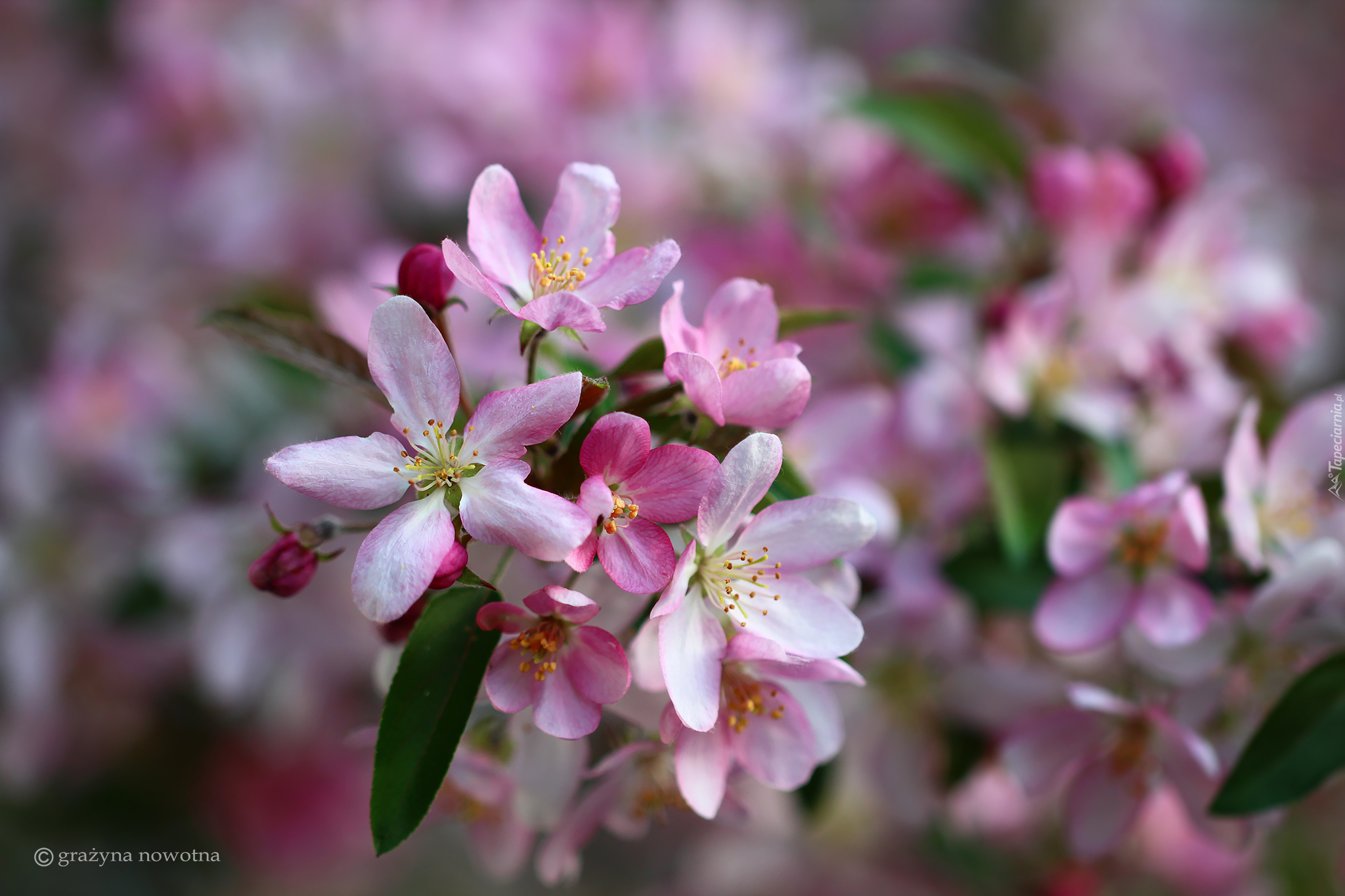 Edytor tapety: Biało-różowe kwiatki drzewa owocowego