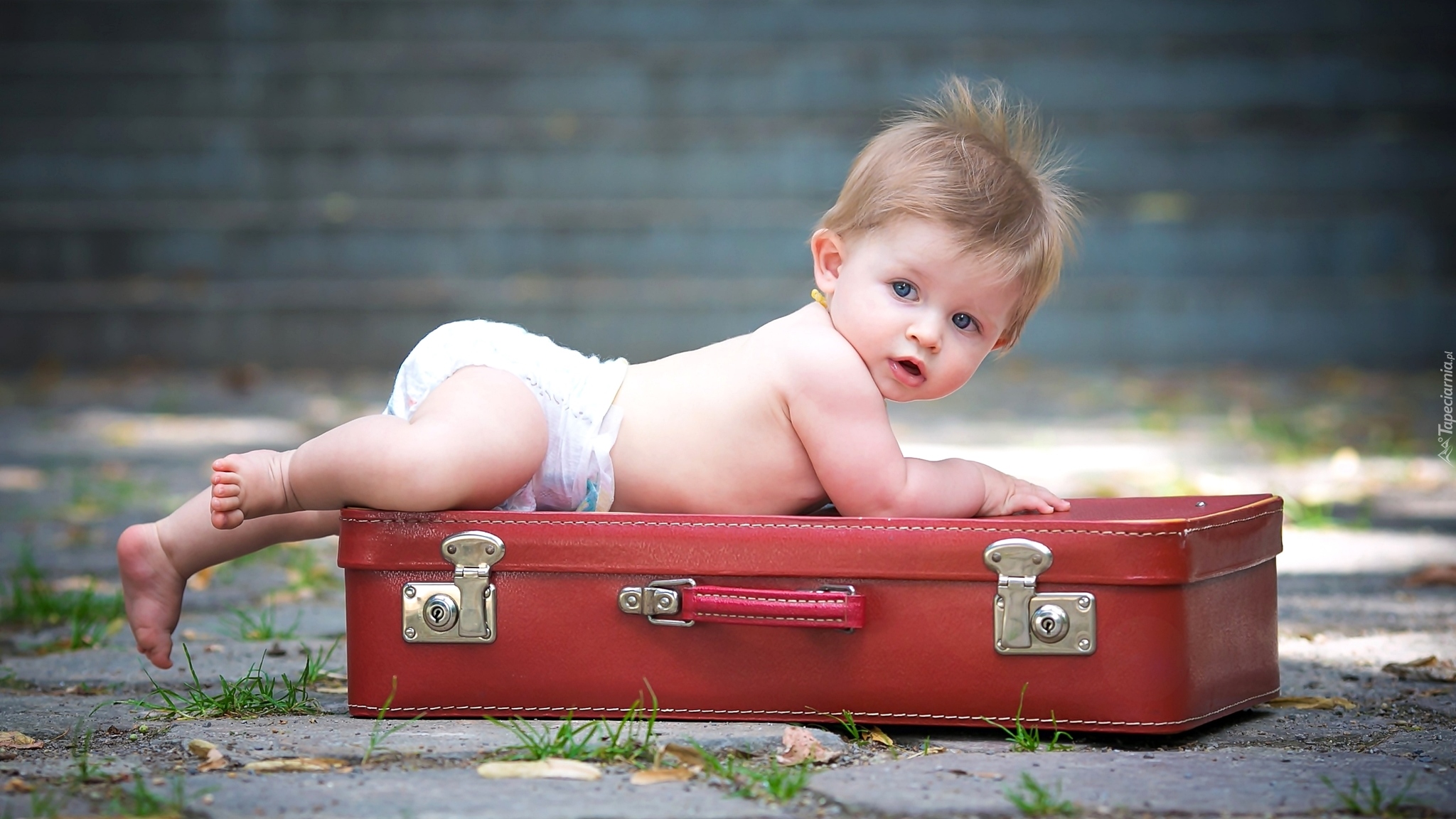 Edytor tapety: Dziecko w pampersie na walizce