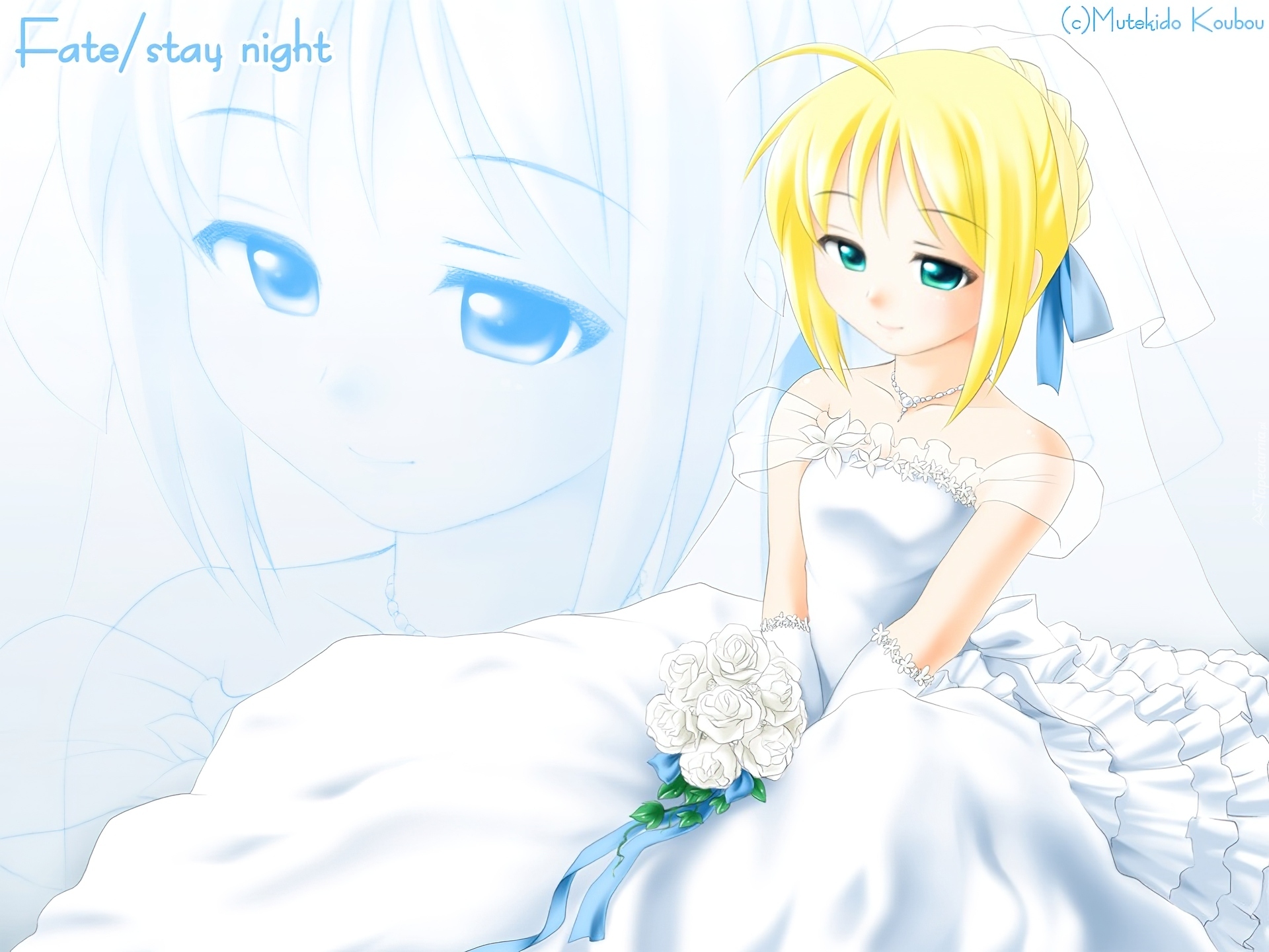 Edytor tapety: welon, dziewczyna, Fate Stay Night, panna młoda, kwiatki