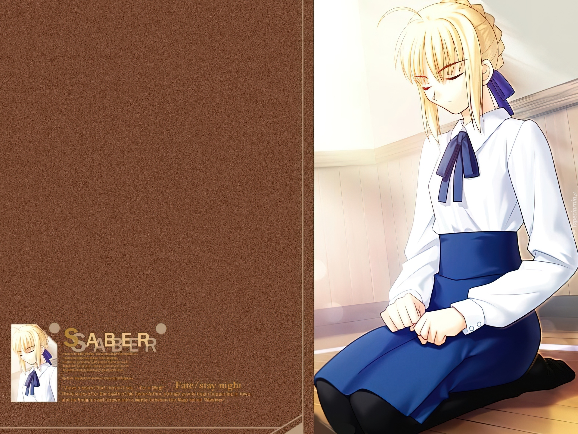 Edytor tapety: Fate Stay Night, Saber, kobieta, klęczy, spódnica, kokarda
