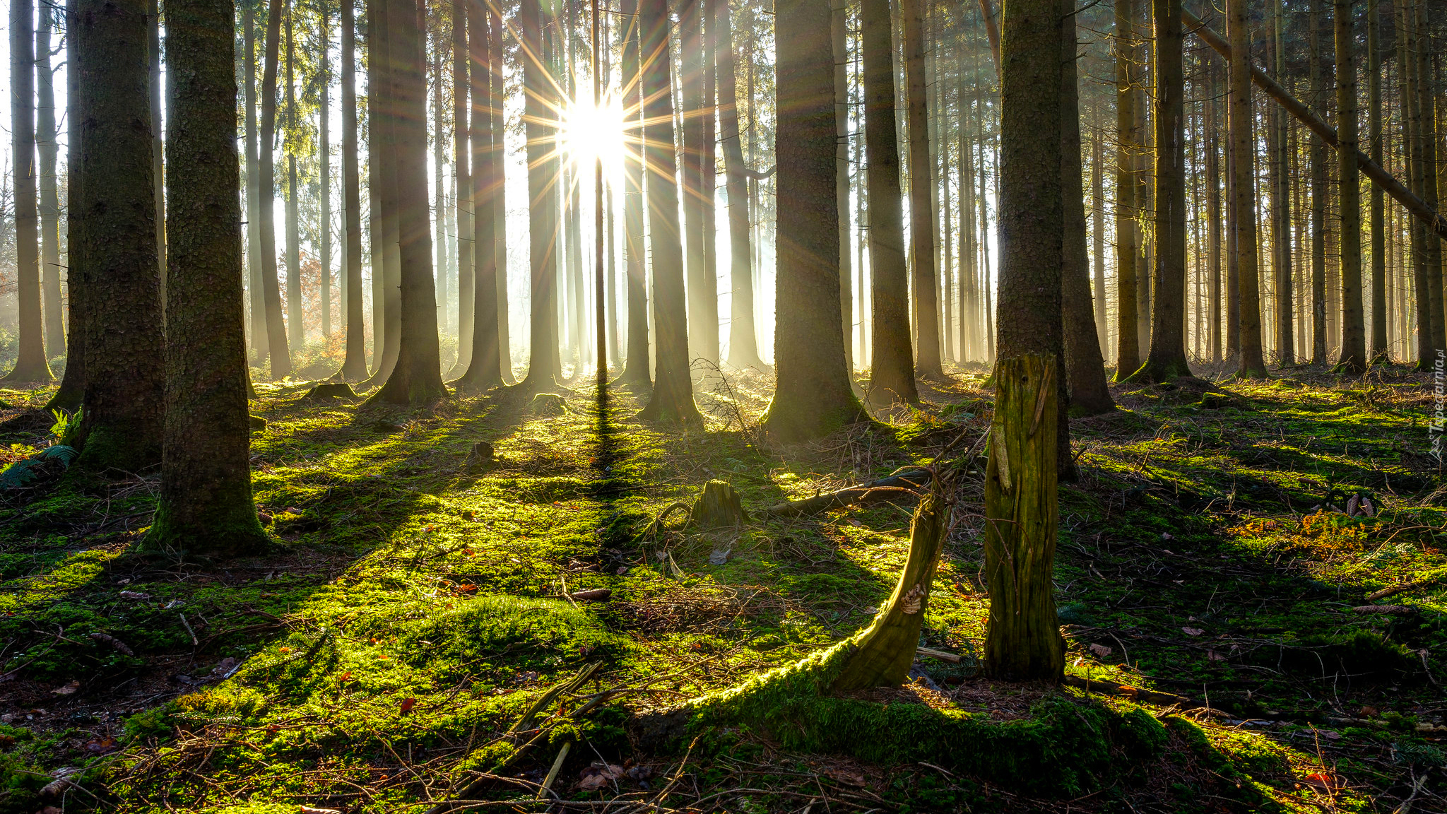 Edytor tapety: Promyki słońca w lesie