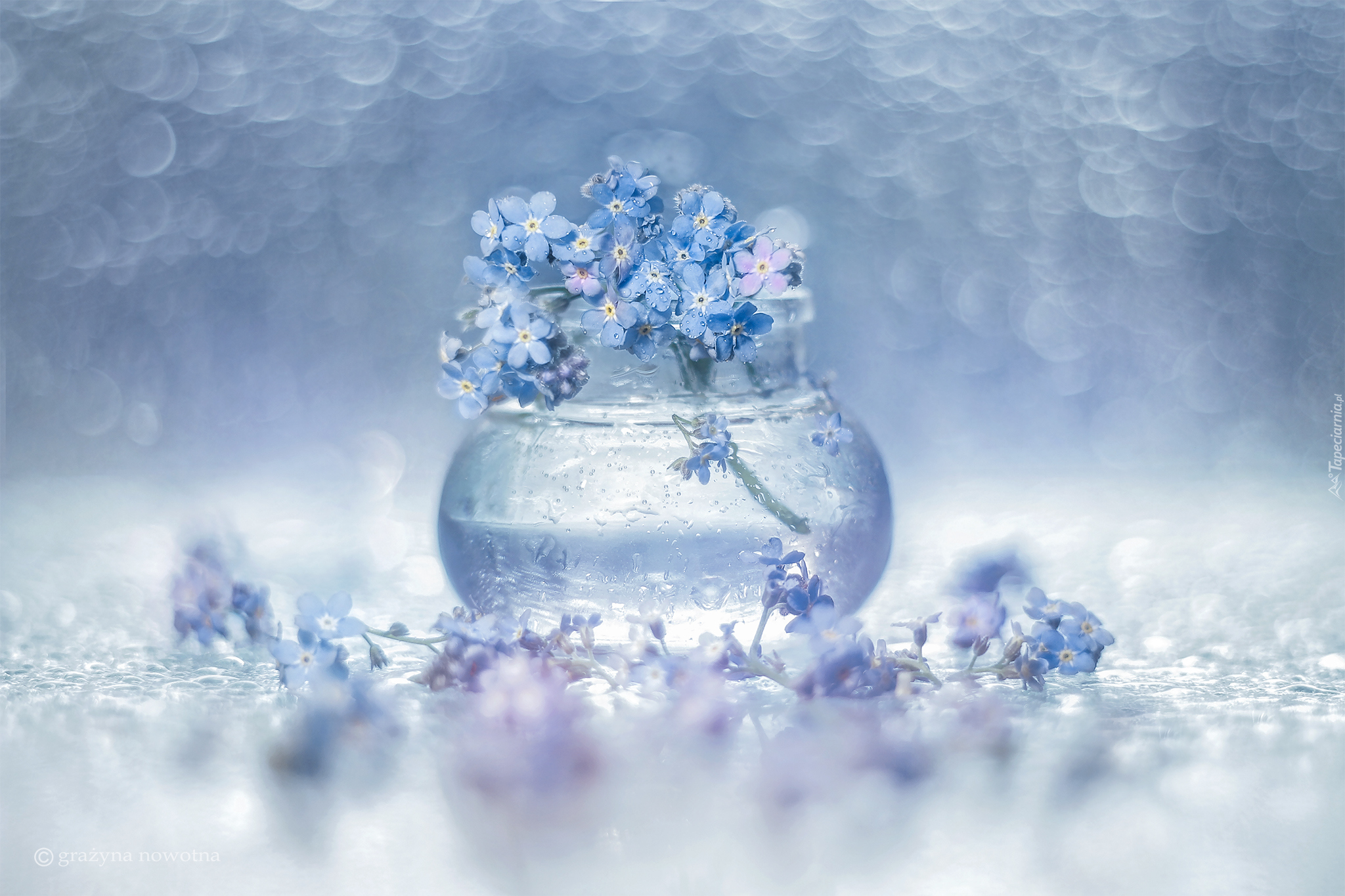 Edytor tapety: Niezapominajki w szkalnym wazoniku