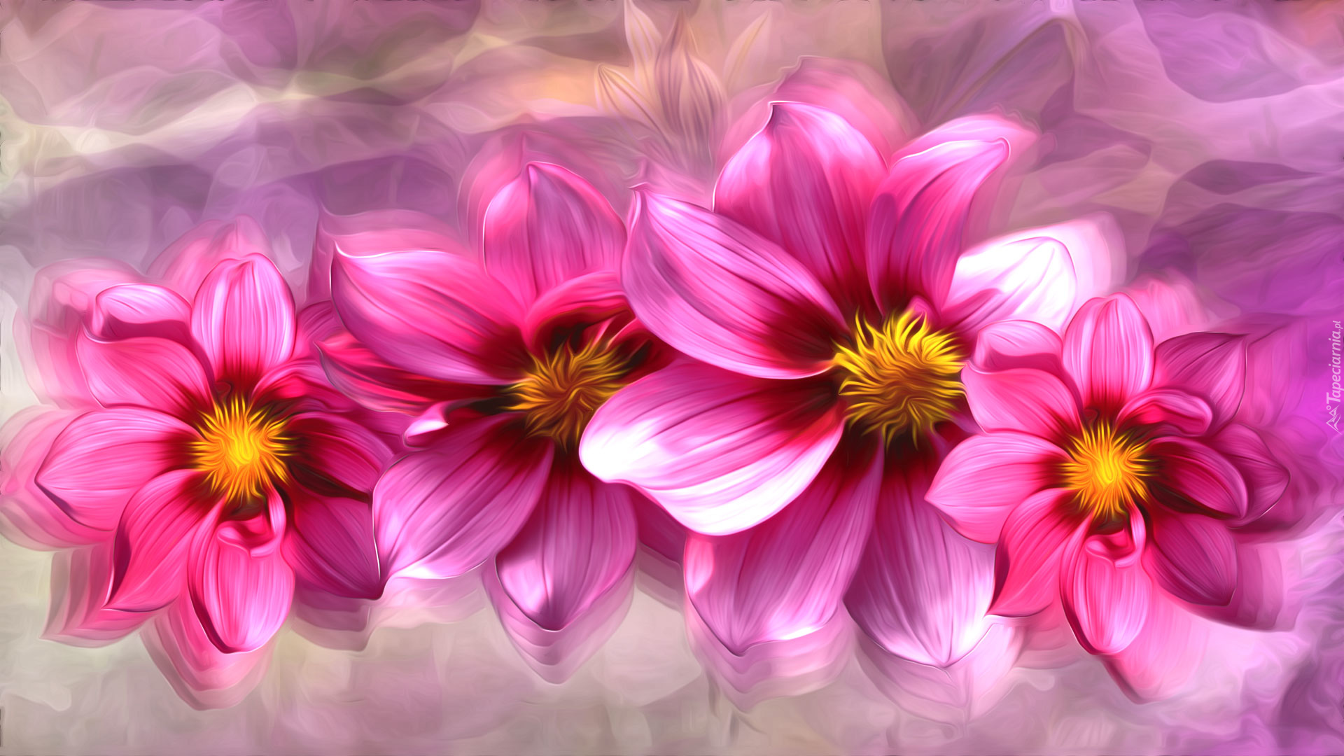 Edytor tapety: Różowe kwiatki z żółtym środkiem