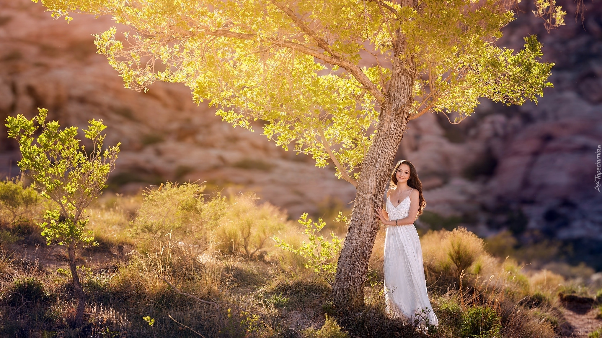 Edytor tapety: Kobieta oparta o drzewo