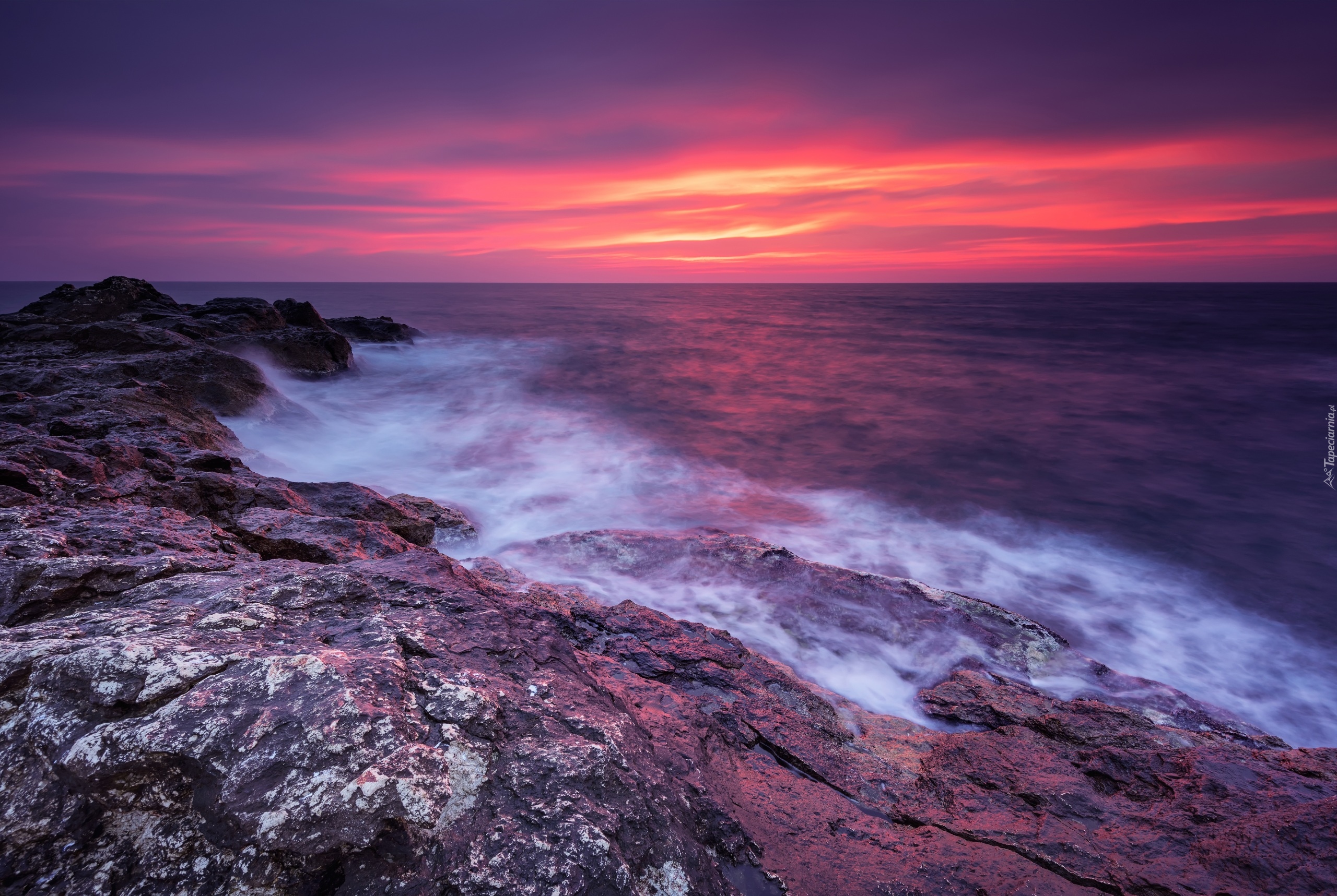 Edytor tapety: Zachód słońca nad morskim brzegiem
