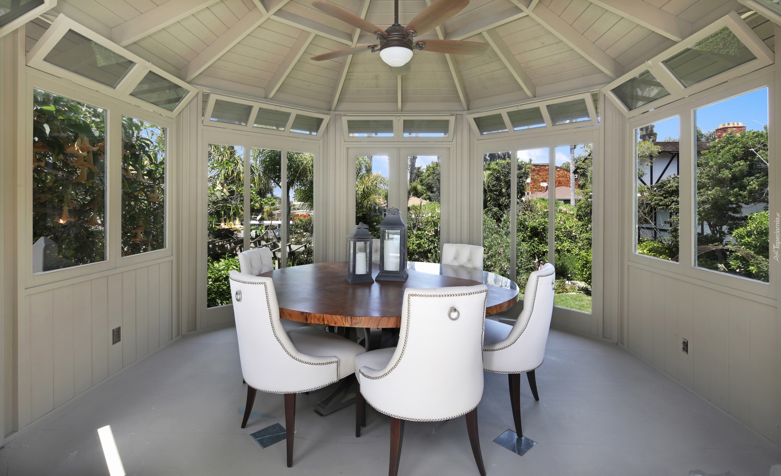 Edytor tapety: Białe krzesła przy okrągłym stole