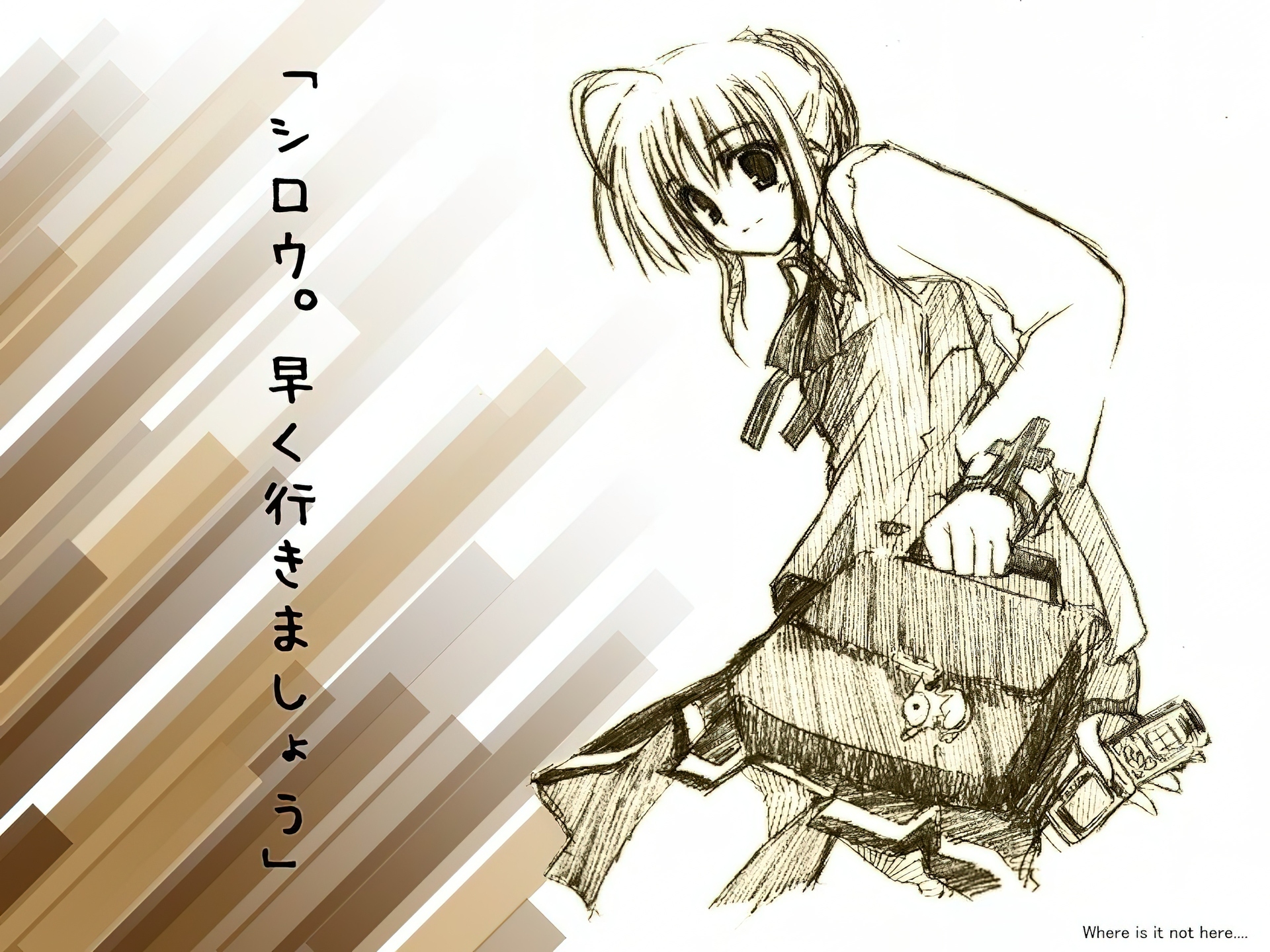 Edytor tapety: Fate Stay Night, dziewczyna, torba, szkic, napis