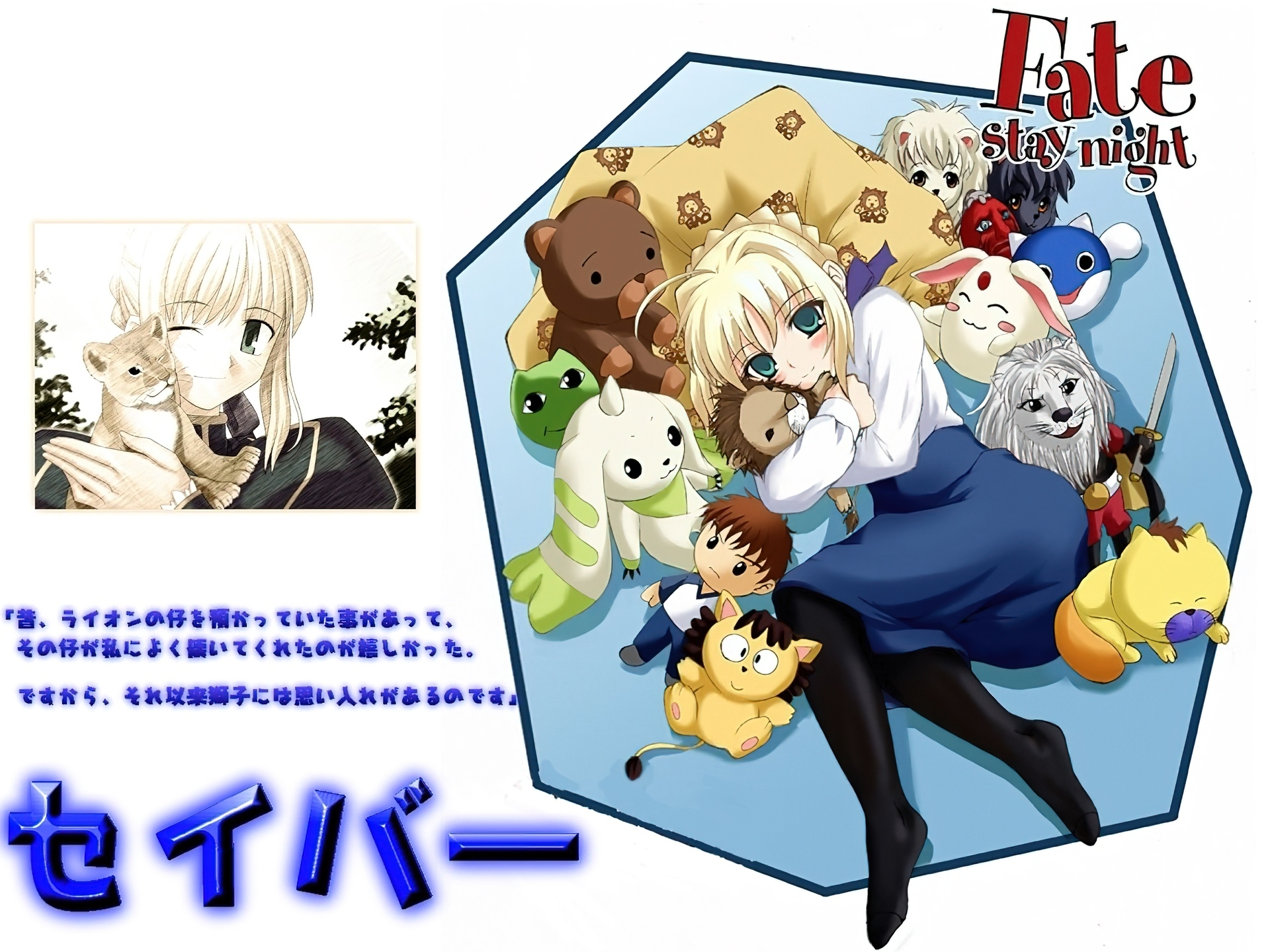 Edytor tapety: Fate Stay Night, kobieta, pluszaki, napisy
