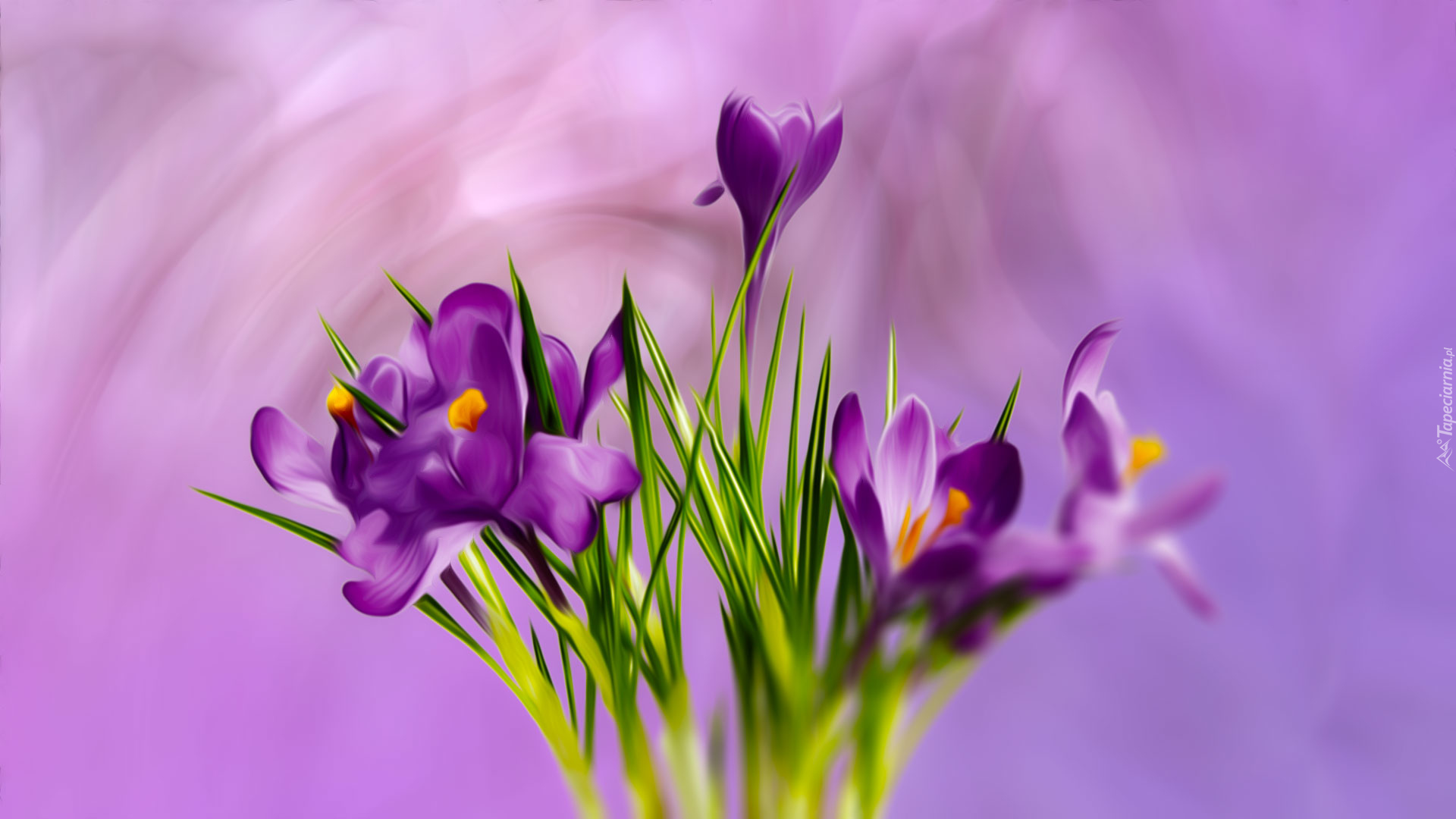 Edytor tapety: Bukiet fioletowych krokusów w grafice