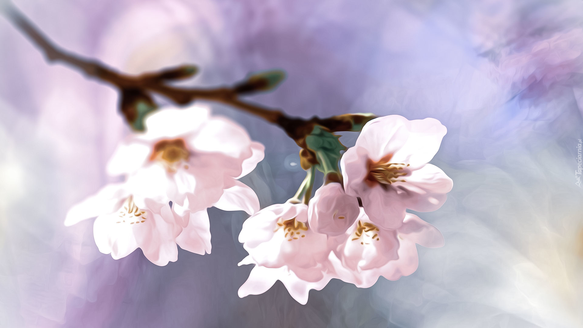 Edytor tapety: Bladoróżowe kwiatki na gałązce