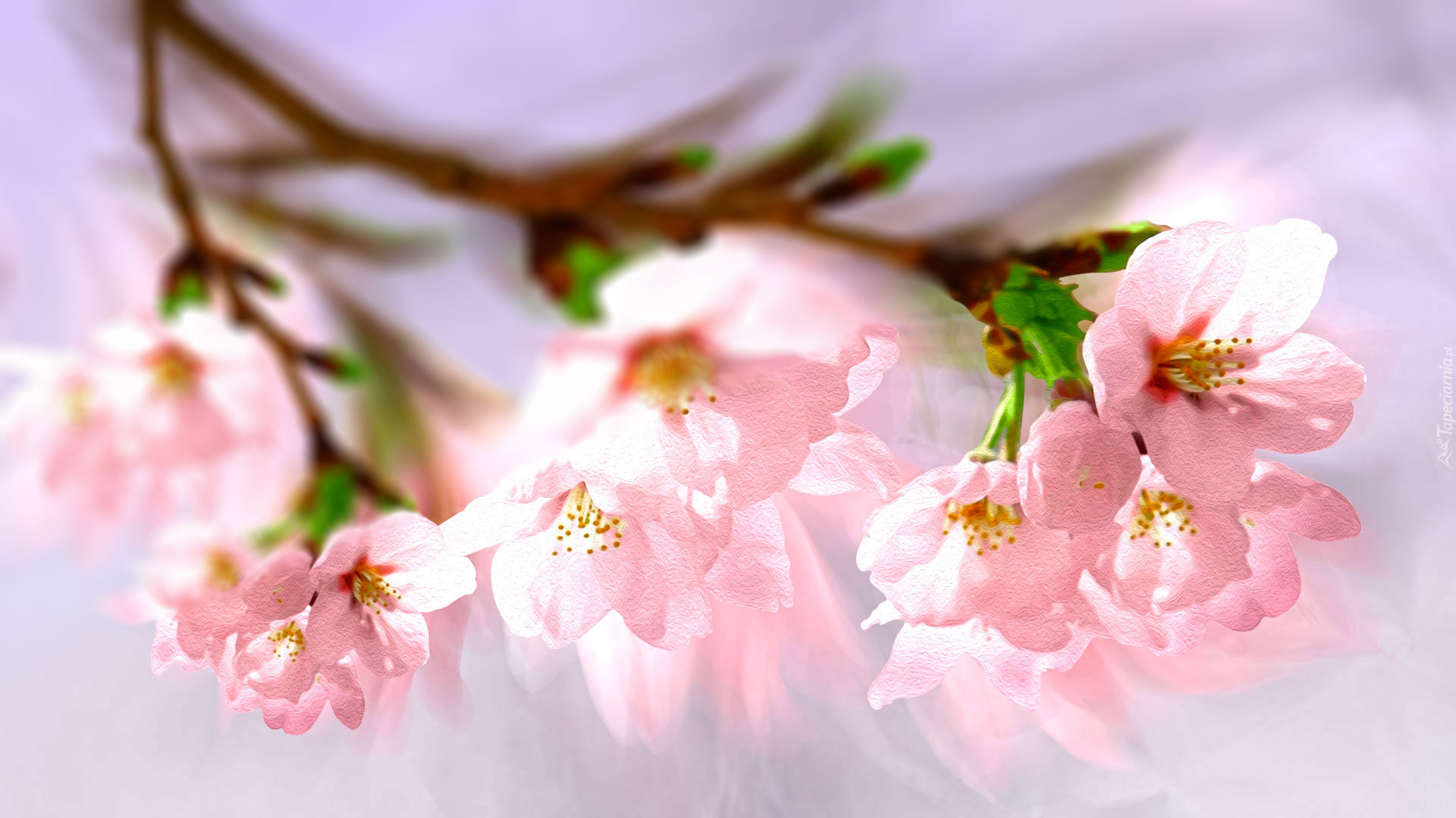 Edytor tapety: Różowe kwiaty na gałązce w 2D