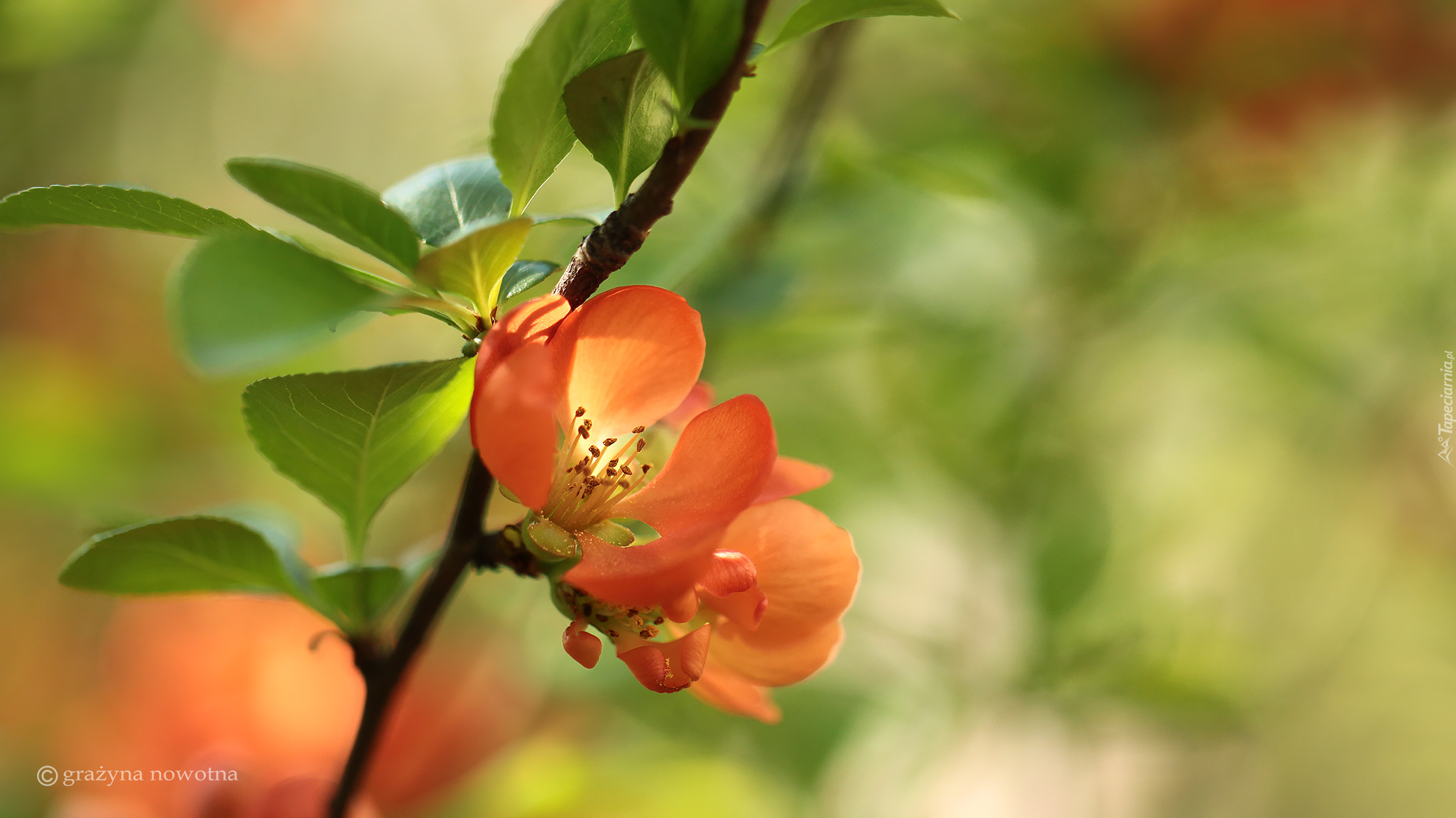 Edytor tapety: Kwitnąca gałązka pigwowca