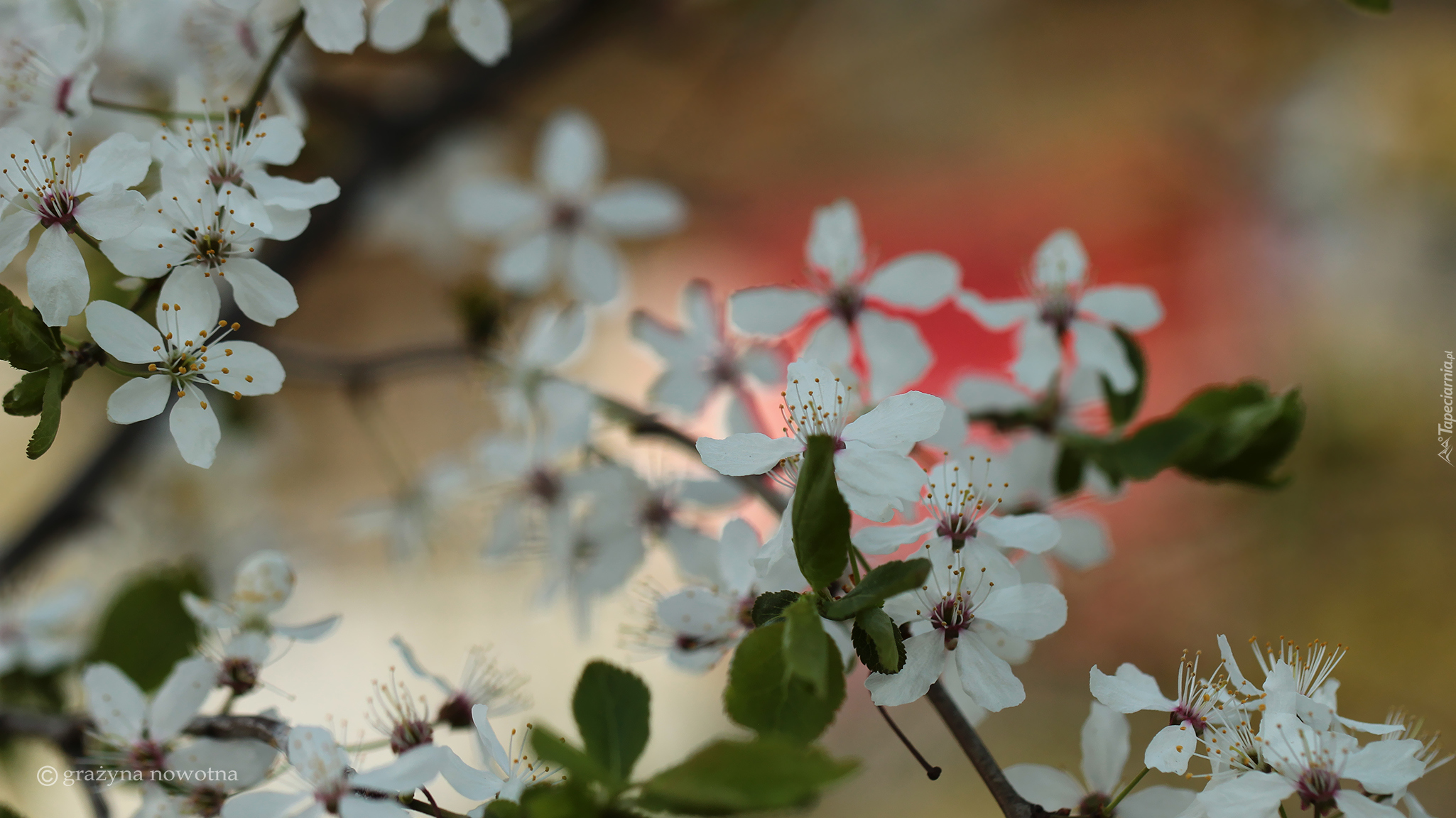 Edytor tapety: Białe kwiaty śliwy mirabelki